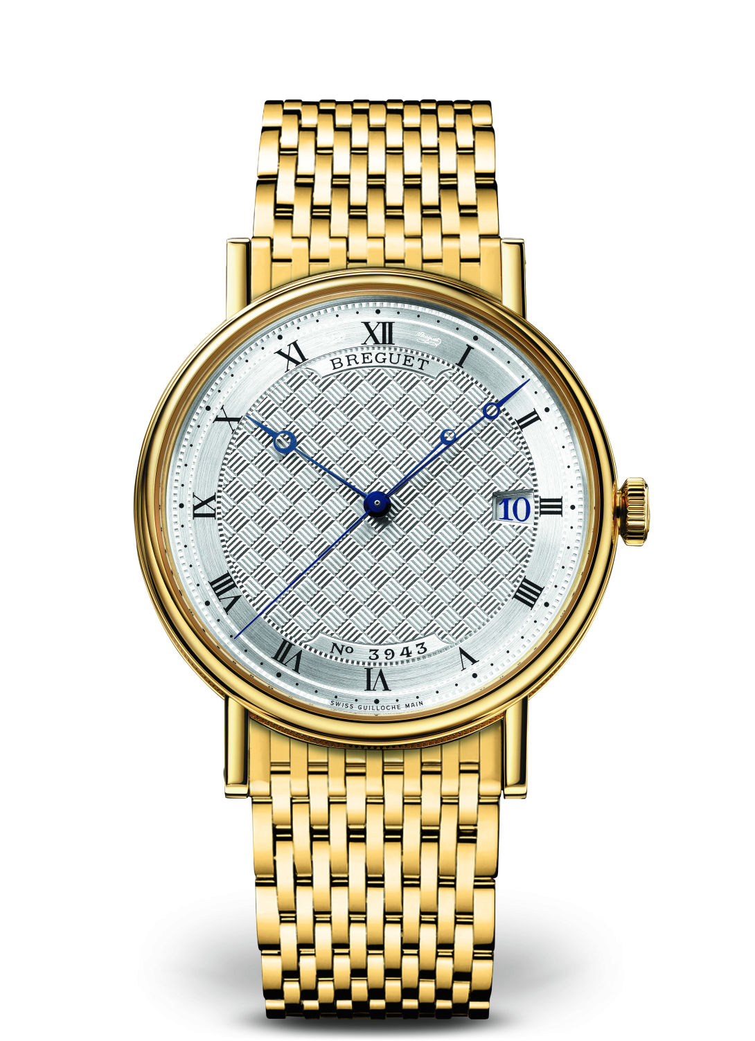 ブレゲの要素を色濃く受け継ぐこのモデルは、フルート模様「コインエッジ」のケースバンド、サファイア・ケースバック(透明裏蓋)、溶接されたラグ、「グラン・フー」エナメルダイヤルまたはギヨシェ模様の文字盤、極めて特徴的な「アップルハンド」のブレゲ針など、「クラシック」コレクションのモデルのあらゆる洗練された特徴をすべて備えています。