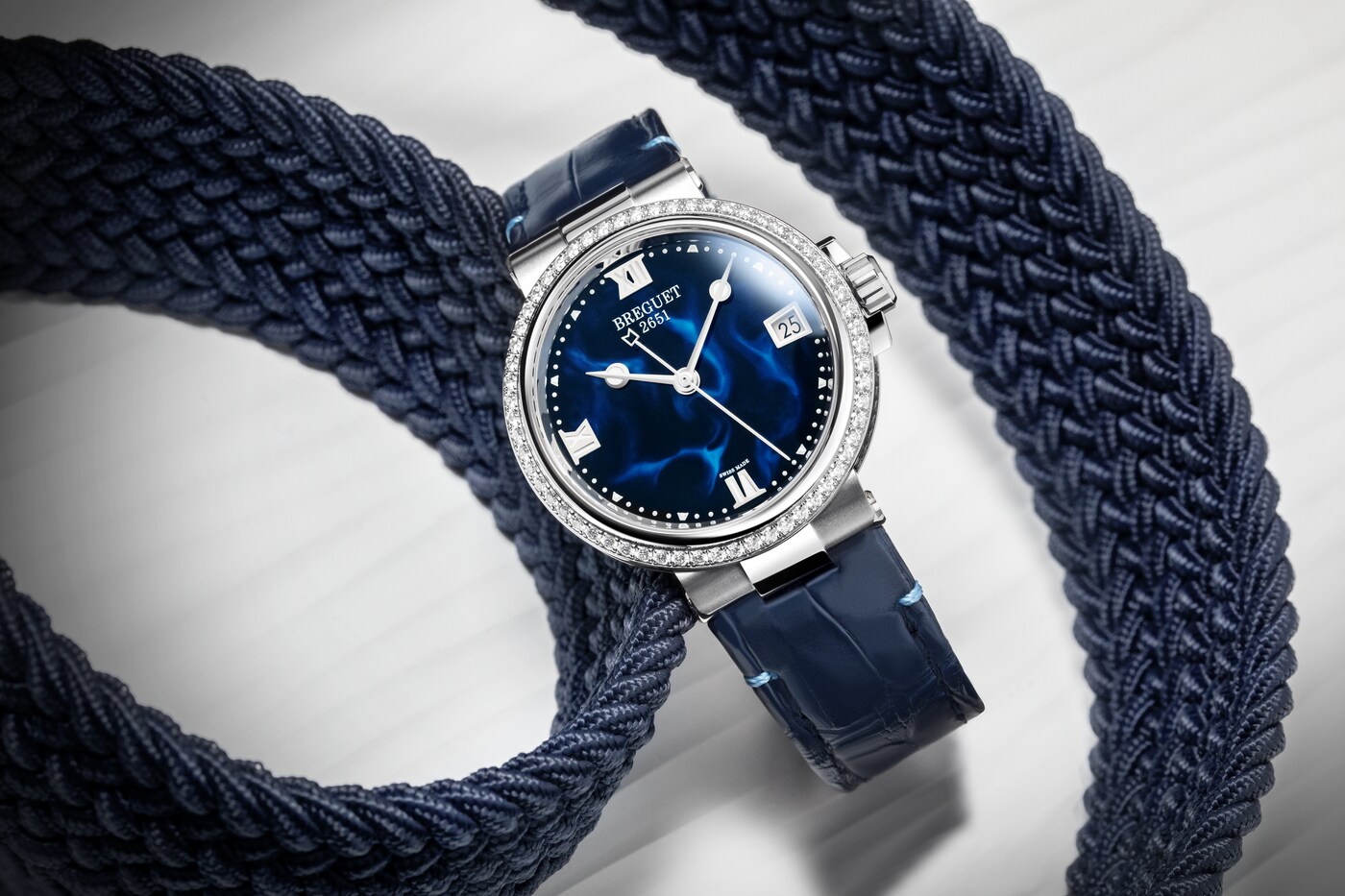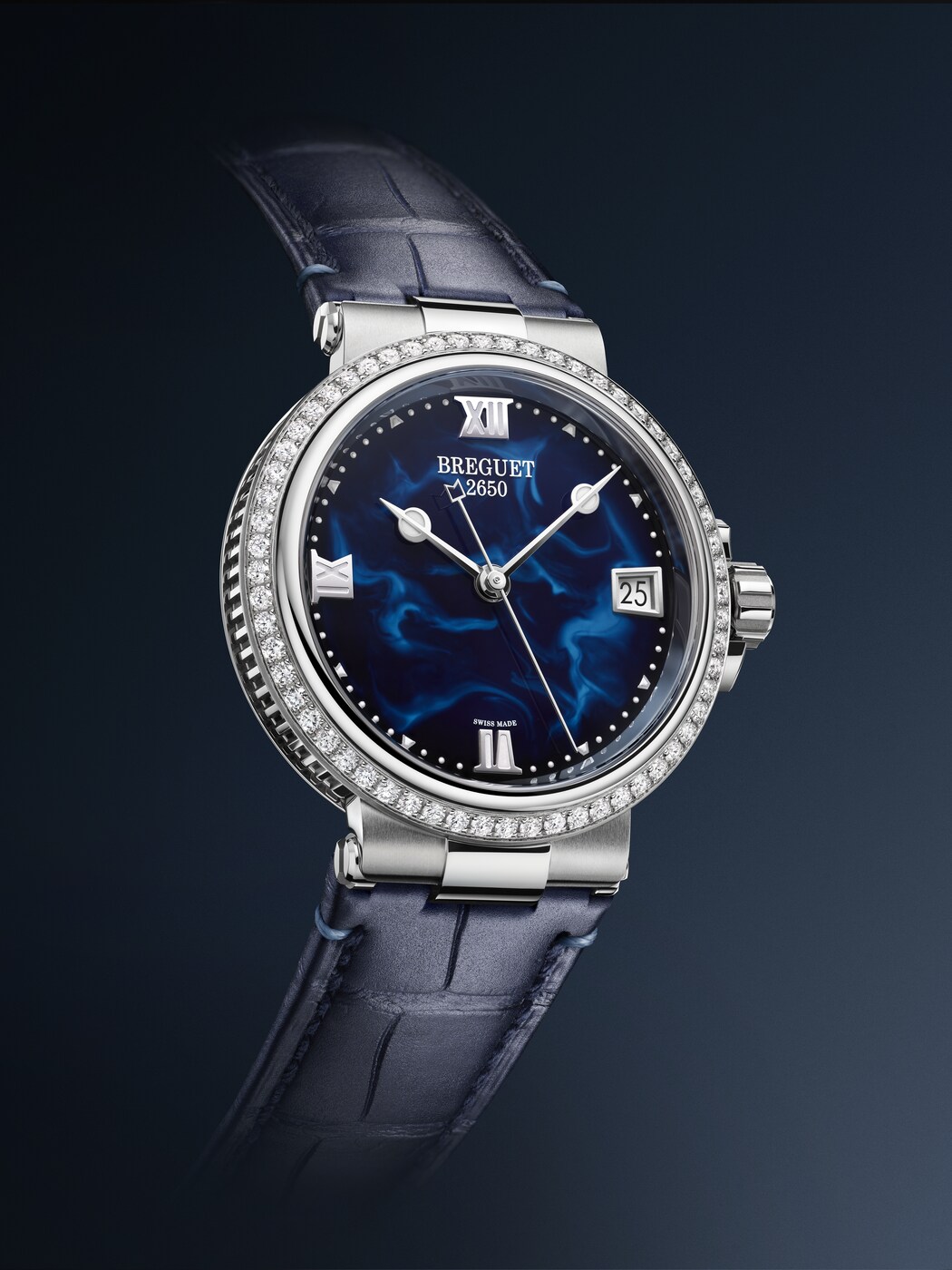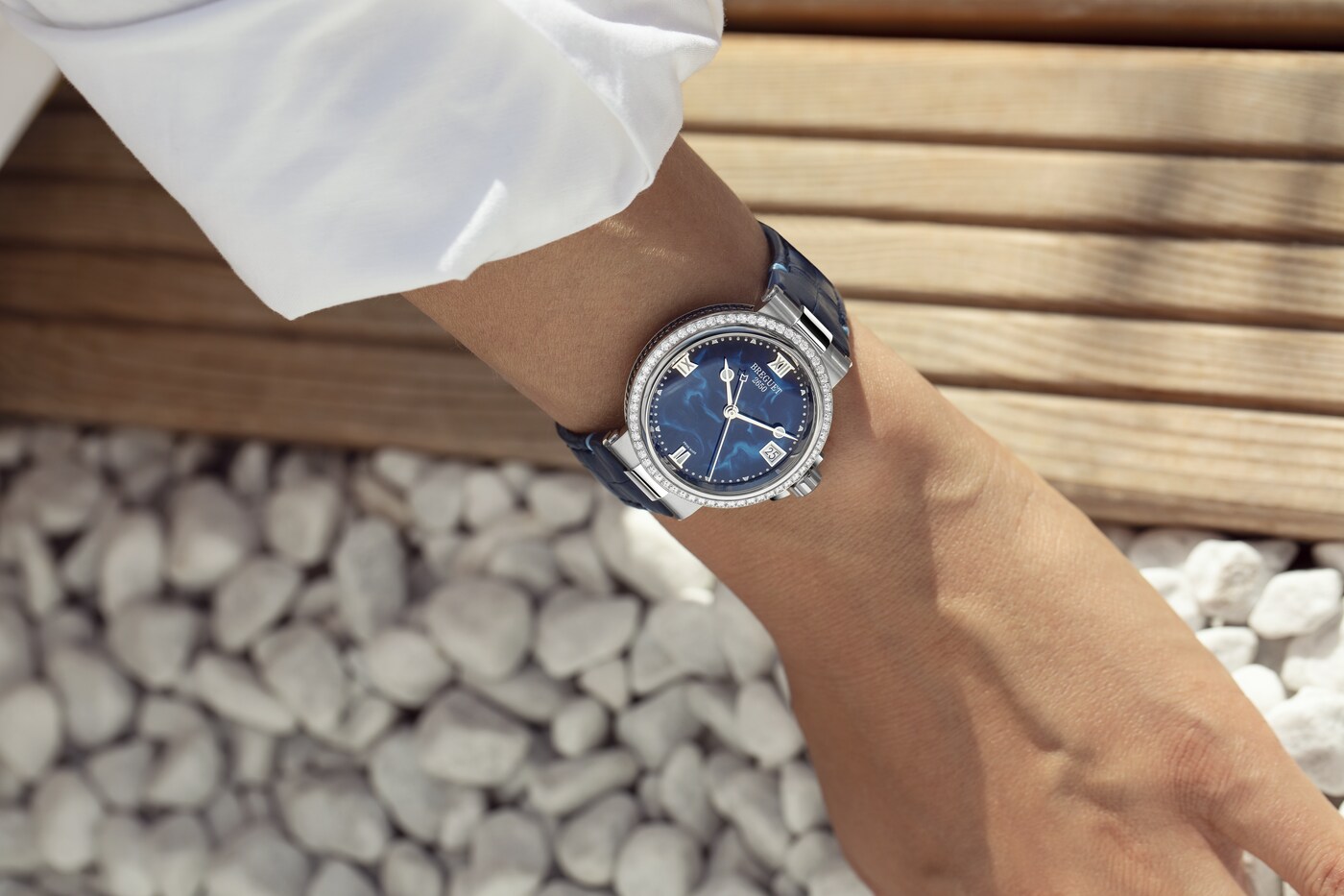 「マリーン」コレクションのスポーティでダイナミックな個性が、繊細なダイヤモンドセッティングと融合します。