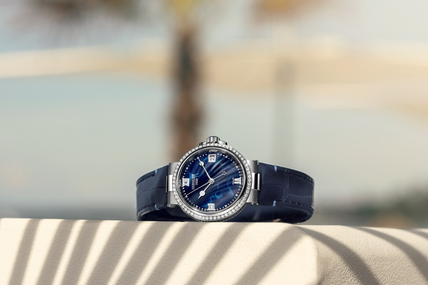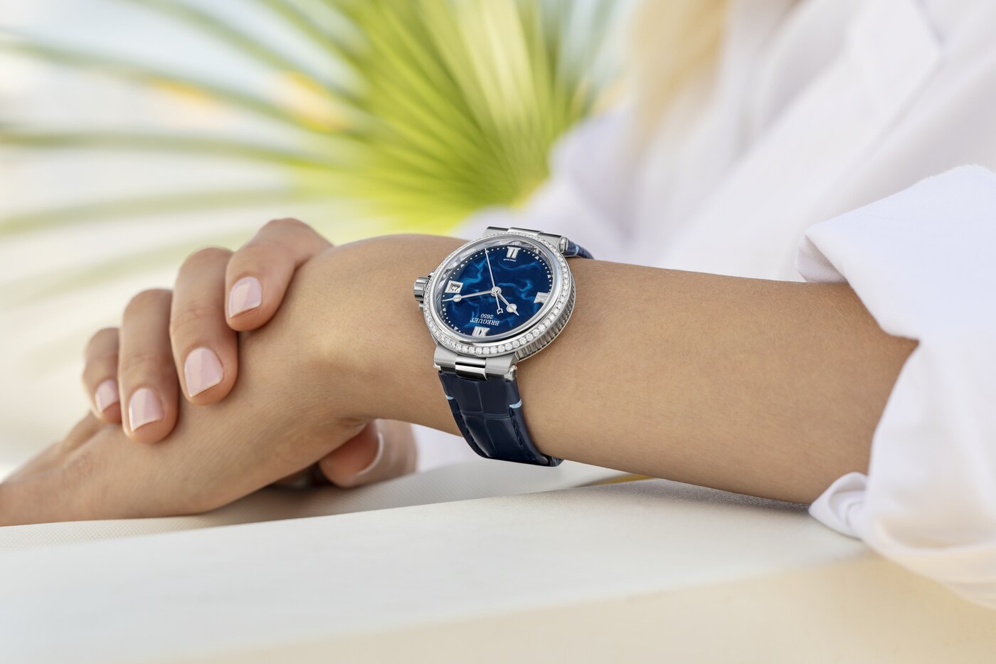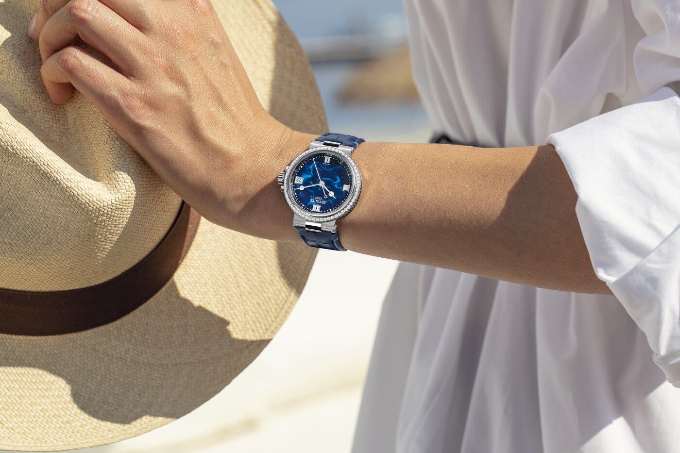 「マリーン」コレクションのスポーティでダイナミックな個性が、繊細なダイヤモンドセッティングと融合します。