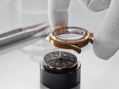 브레게는 역사적인 1955 모델과 같은 블랙 컬러를 구현하기 위해 부식으로부터 완전히 보호하는 자연 산화층을 형성하는 양극 산화 공정을 적용했습니다. 브레게는 이 공정을 위해 기계적 저항성이 뛰어난 딥 블랙 양극 산화 처리라는 해당 분야의 혁신적인 기술을 사용했는데, 이는 현재 항공 우주 분야에서 사용되고 있습니다. 그 결과 최고의 가독성과 내구성이 보장됩니다.