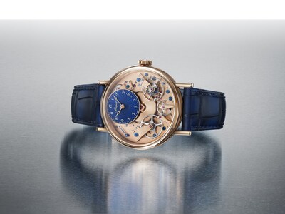 브레게의 250주년을 기념해 선보인 익스클루시브 합금 브레게 골드(Breguet gold)가 트래디션 7035의 케이스를 특별하게 한다. 무브먼트의 독창적인 구조미를 강조하는 이 스페셜 에디션은 반투명 블루 컬러의 그랑푀 에나멜 다이얼에는 기요셰(guilloche) 패턴을 더했으며 시와 분을 표현했다, 그리고 10시와 11시 사이에 차분하게 배치된 레트로그레이드 초 디스플레이를 함께 갖추고 있다.