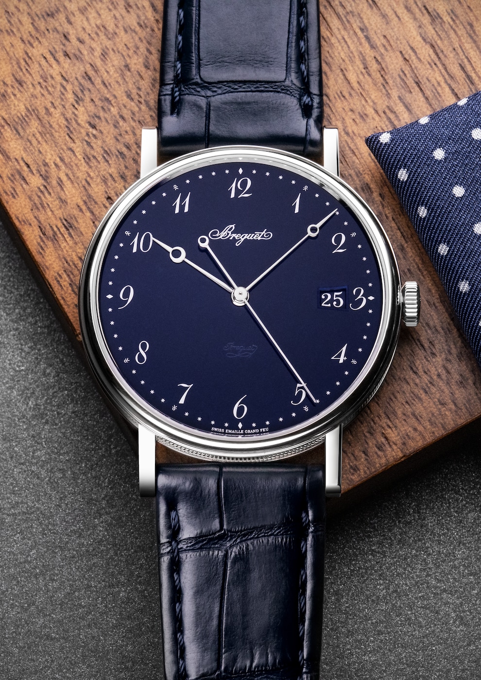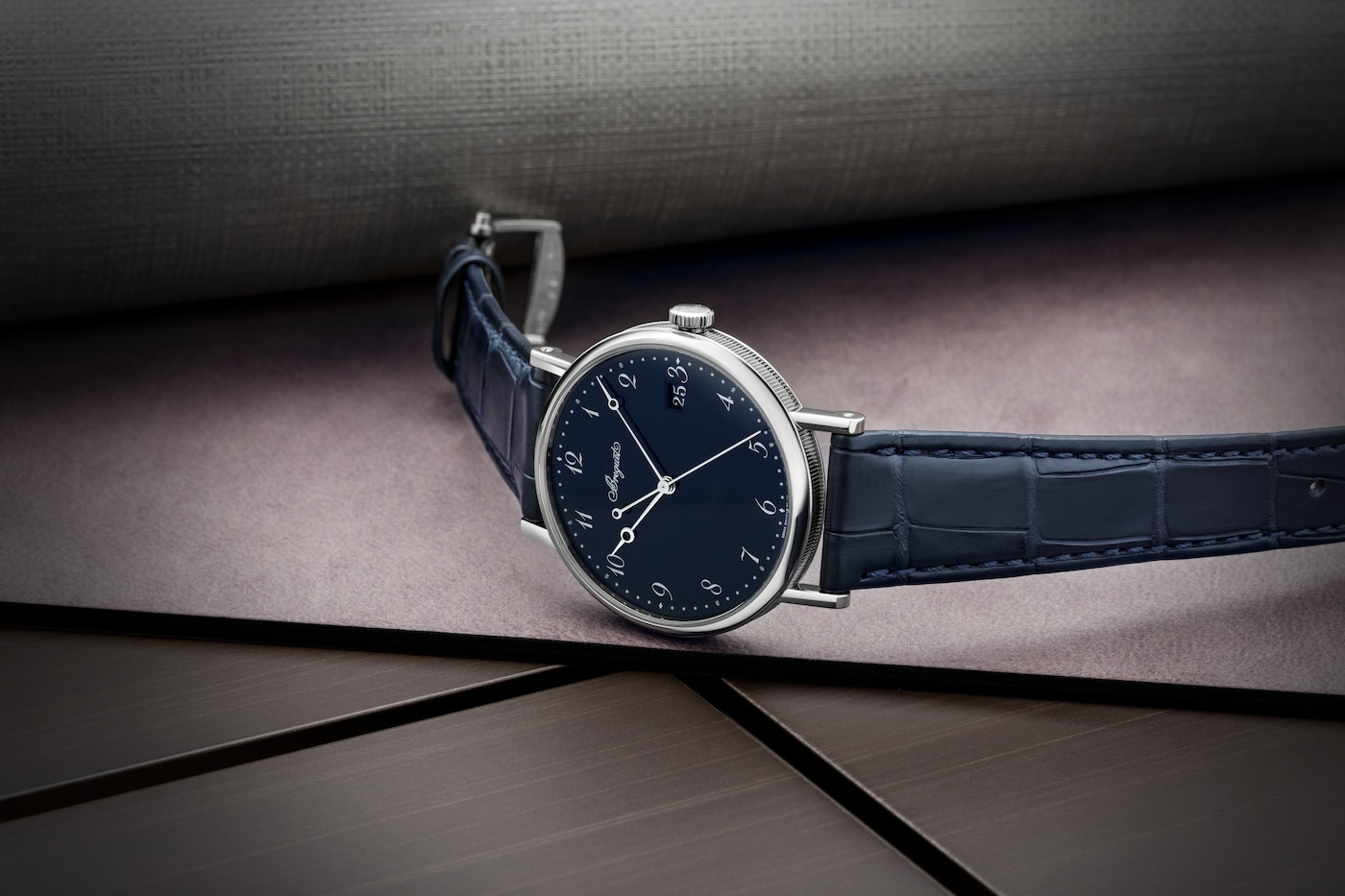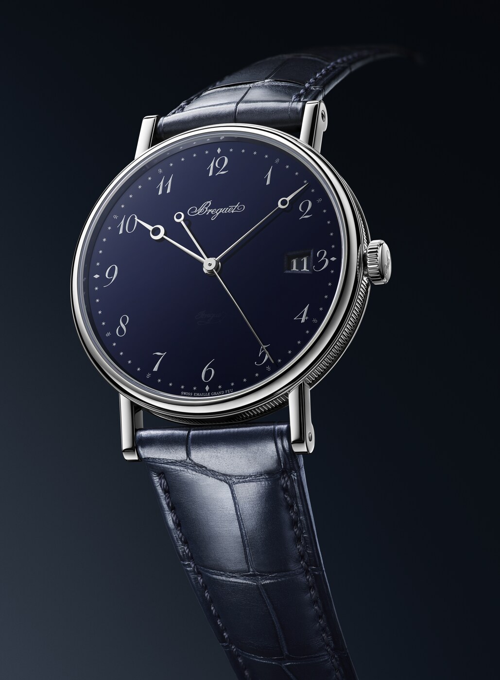 기요셰 또는 에나멜 다이얼의 시간 디스플레이는 3시 방향의 날짜 인디케이터와 조화를 이룹니다.