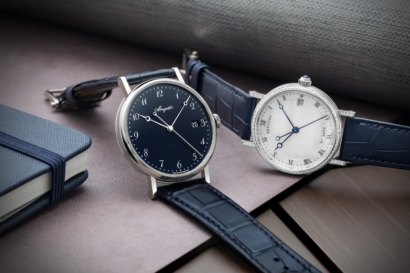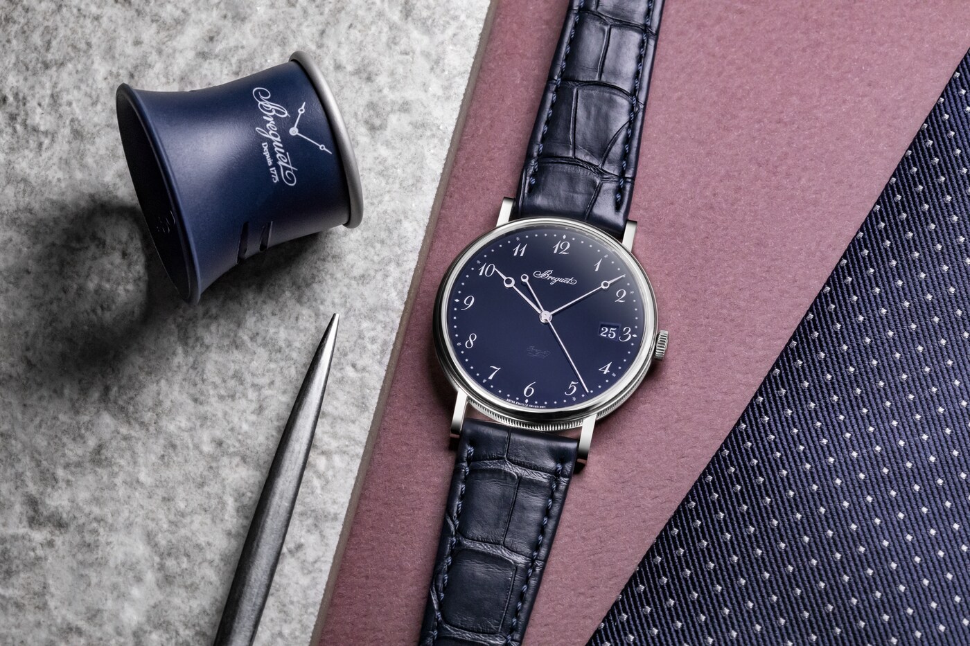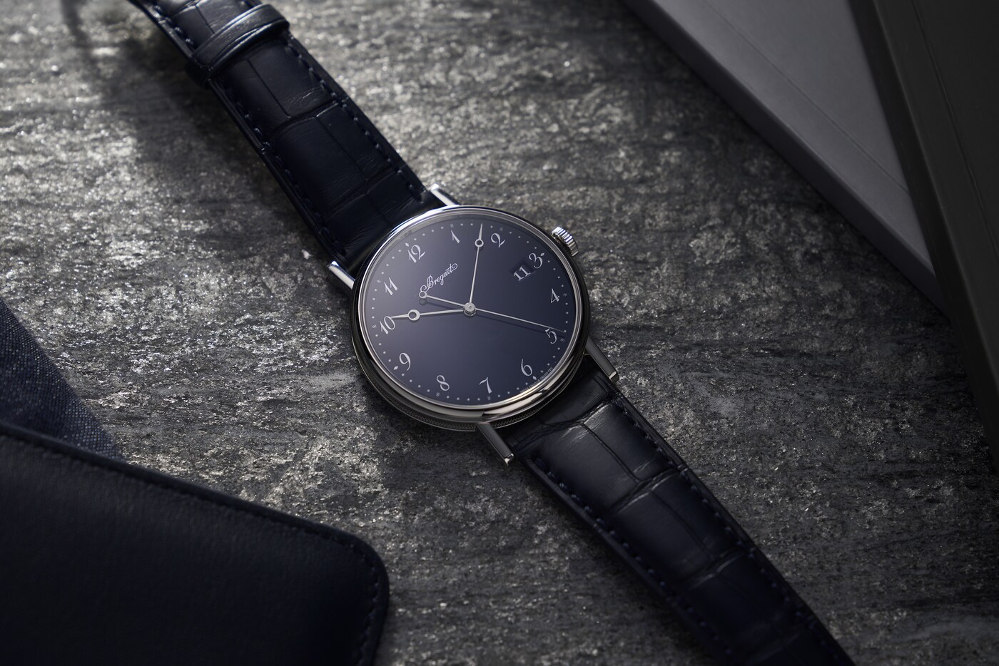 기요셰 또는 에나멜 다이얼의 시간 디스플레이는 3시 방향의 날짜 인디케이터와 조화를 이룹니다.