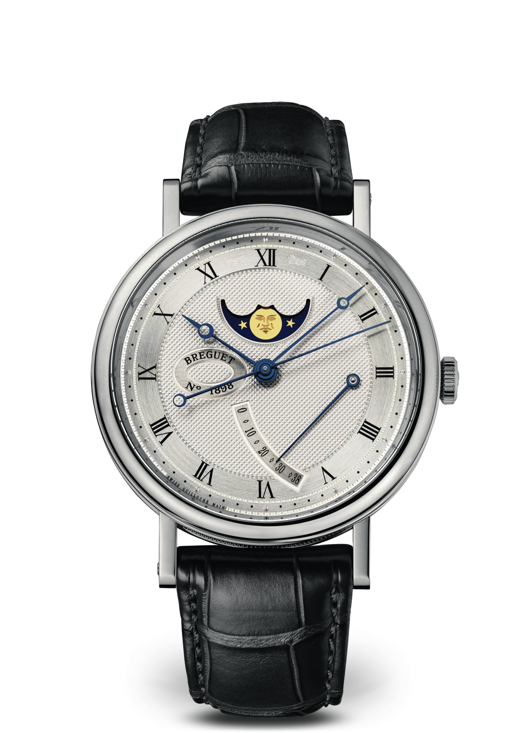 중앙에 시, 분, 초 기능을 갖춘 이 레퍼런스는 12시 방향에 문페이즈, 3시 방향에 파워 리저브 컴플리케이션을 갖추고 있습니다. 파워 리저브는 특히 길고 가독성이 뛰어나며 세련된 핸드를 사용하여 확인할 수 있습니다.