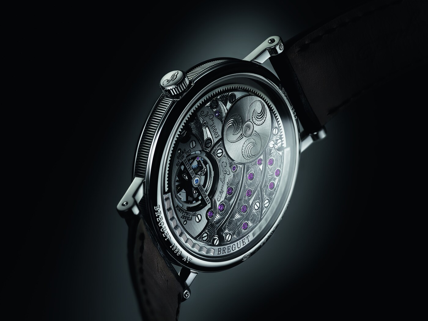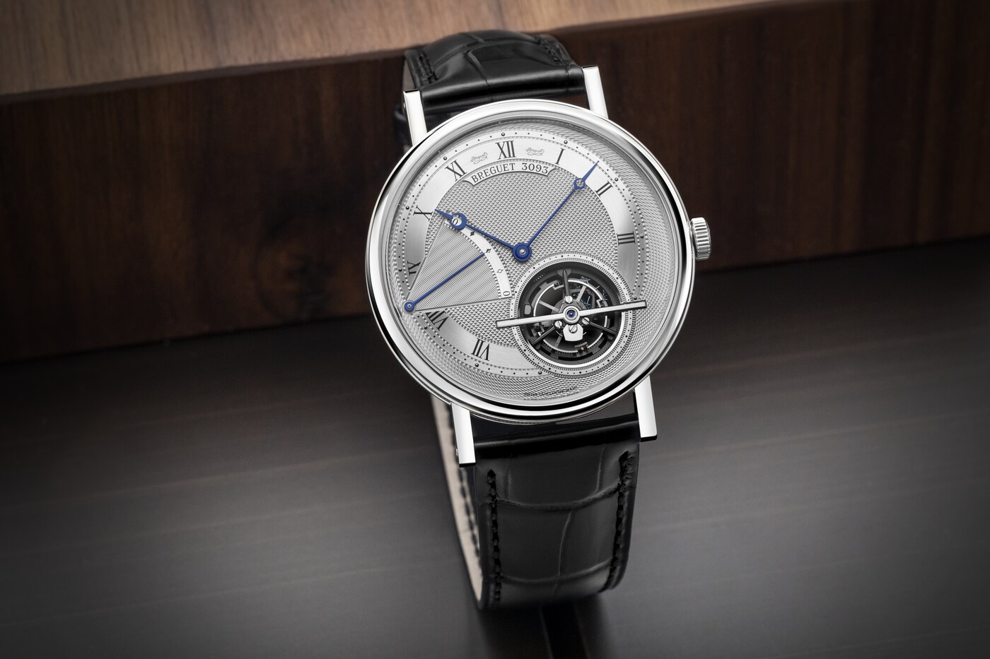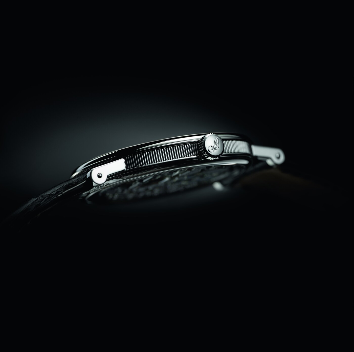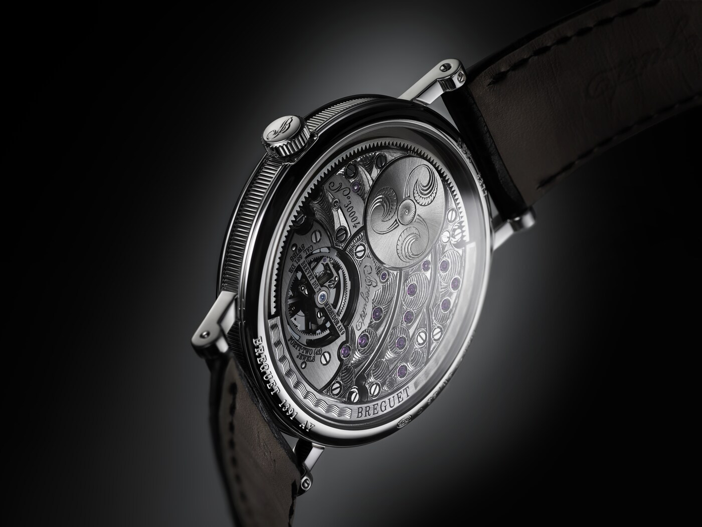 이 모델에는 가장 얇은 브레게 셀프 와인딩 투르비용 무브먼트가 탑재되었습니다. 섬세한 기요셰 다이얼에는 브레게 하우스의 전통적인 핸즈가 장식되었습니다.
