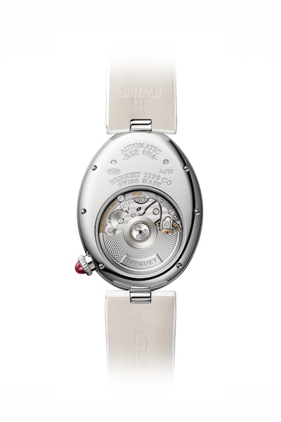 이 시계는 아워 챕터를 둘러싸며 다이얼과 조화를 이루는 대형 브레게 숫자가 특징입니다.