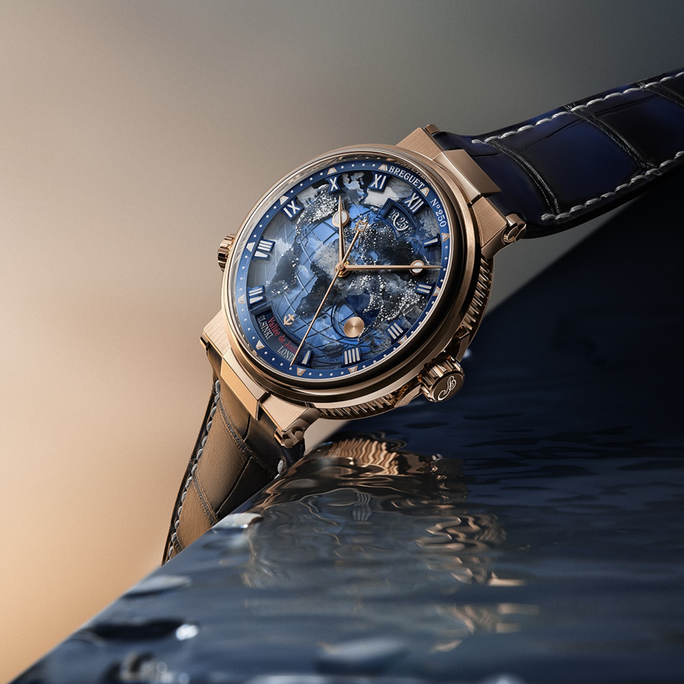 루이 18세 치하에서 아브라함-루이 브레게가 받은 ‘왕립 해군 공식 시계 제작자’ 칭호에서 영감을 얻어, 마린 컬렉션은 이 유산을 현대적인 타임피스로 재해석합니다. 바다의 반짝임을 담은 기요셰, 새틴 마감, 섬세한 인그레이빙 등 각 작품에는 브레게가 200년 넘게 이어온 장인 정신이 담겨 있습니다. 전통적인 시계 제작이 스포츠적인 매력과 결합되어, 시간을 뛰어넘는 존재로 표현됩니다.