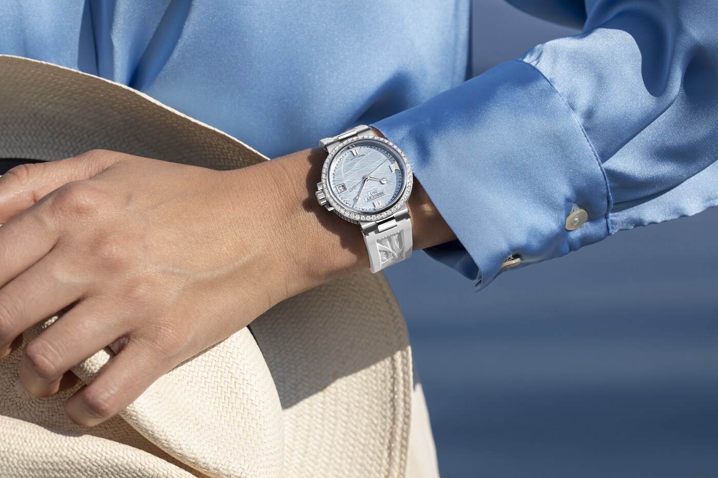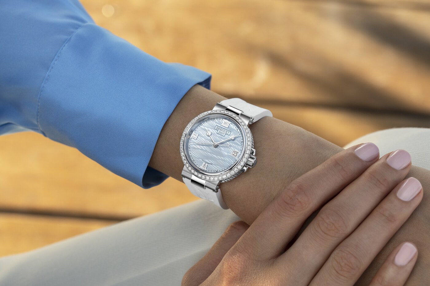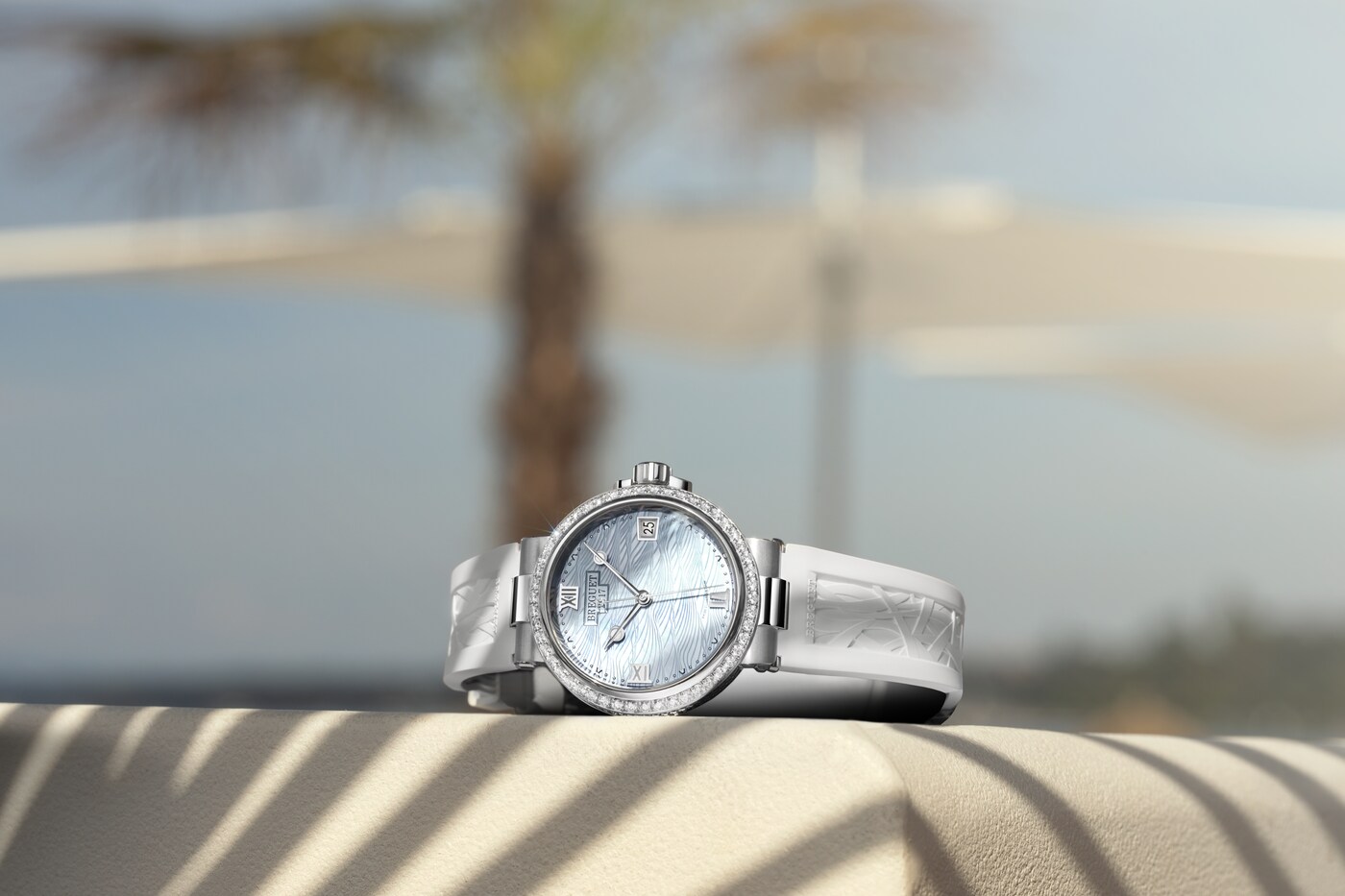 마린 라인의 스포티하고 역동적인 실루엣이 섬세한 다이아몬드 세팅과 조화를 이룹니다.