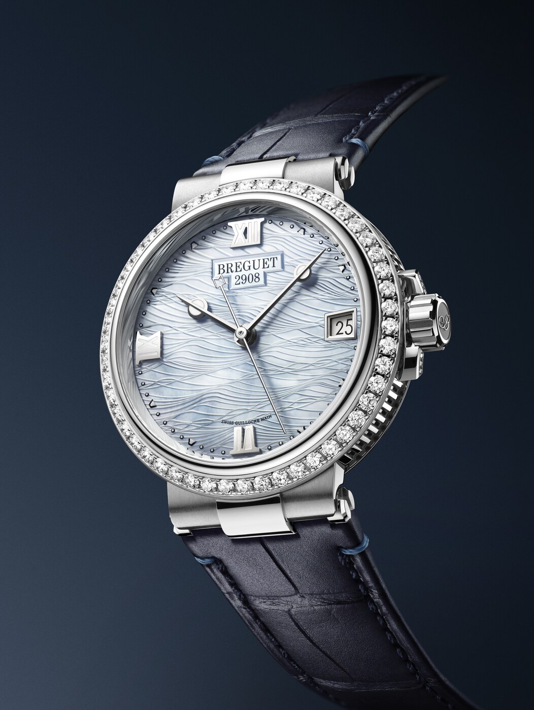마린 라인의 스포티하고 역동적인 실루엣이 섬세한 다이아몬드 세팅과 조화를 이룹니다.