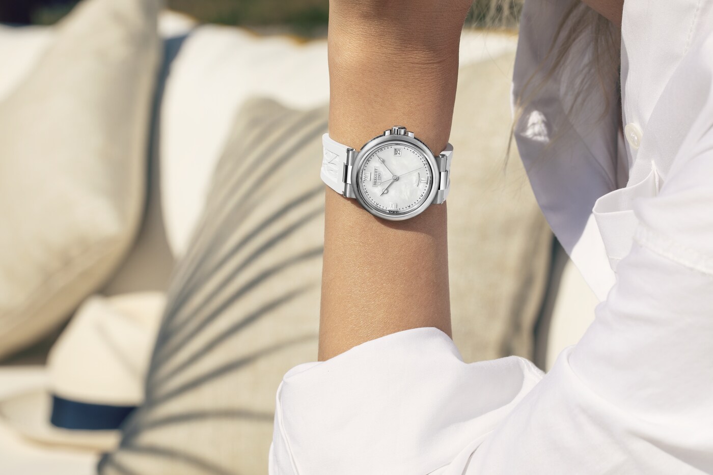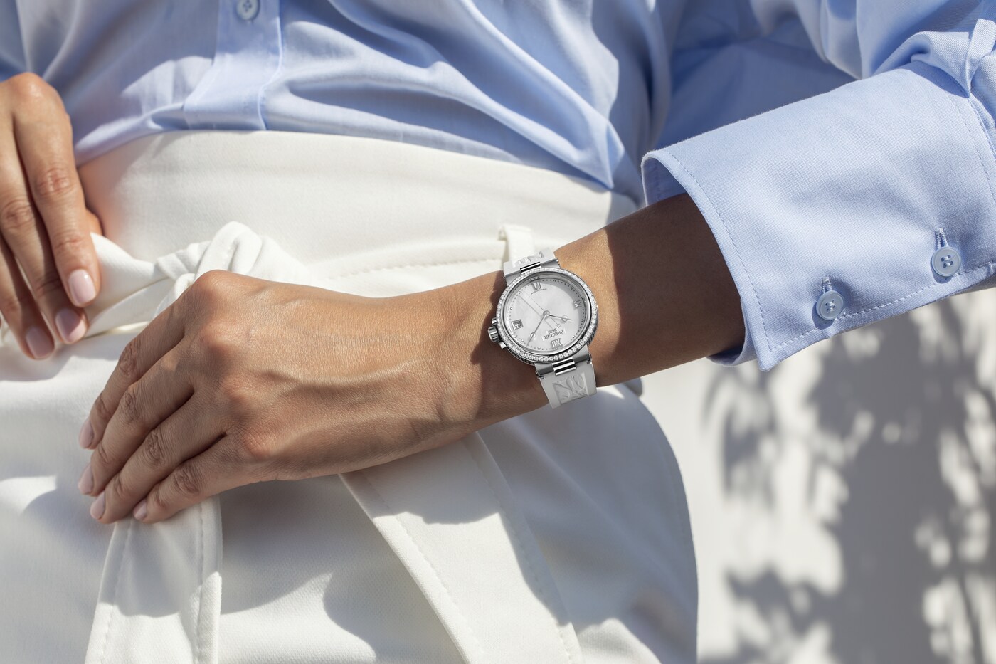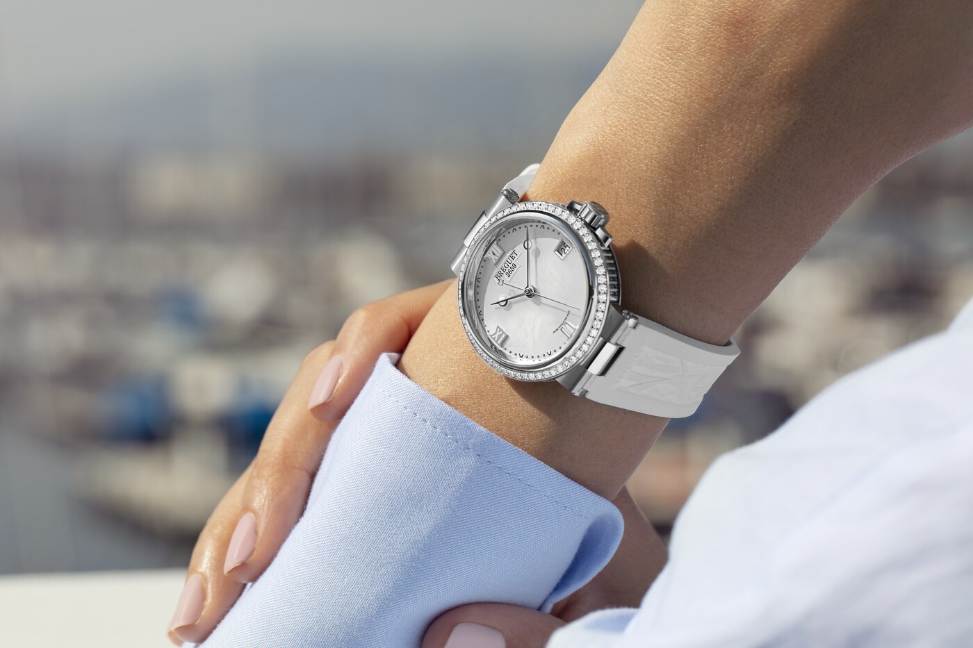 마린 라인의 스포티하고 역동적인 실루엣이 섬세한 다이아몬드 세팅과 조화를 이룹니다.