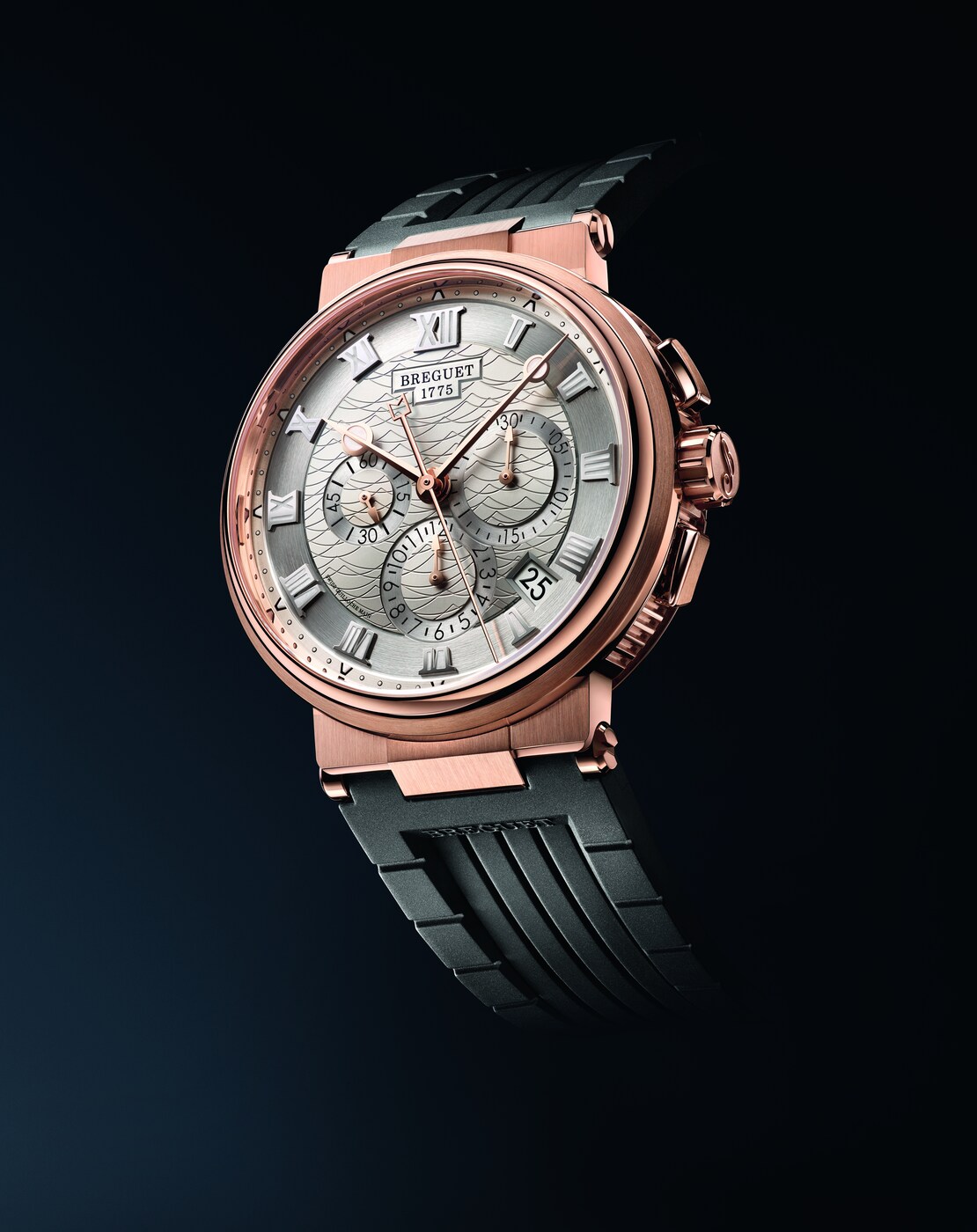 3시와 9시 사이에 배치된 세 개의 카운터는 적절한 분과 시간, 스몰 세컨즈를 표시합니다. 크로노그래프 핸드는 섬세한 해양 디테일로 시선을 사로잡으며, 시대를 초월하는 브레게 핸즈를 사용하여 시간을 읽을 수 있습니다. 숫자 및 마커와 마찬가지로, 어두운 곳에서도 시간을 쉽게 확인할 수 있도록 모두 야광 처리되었습니다.