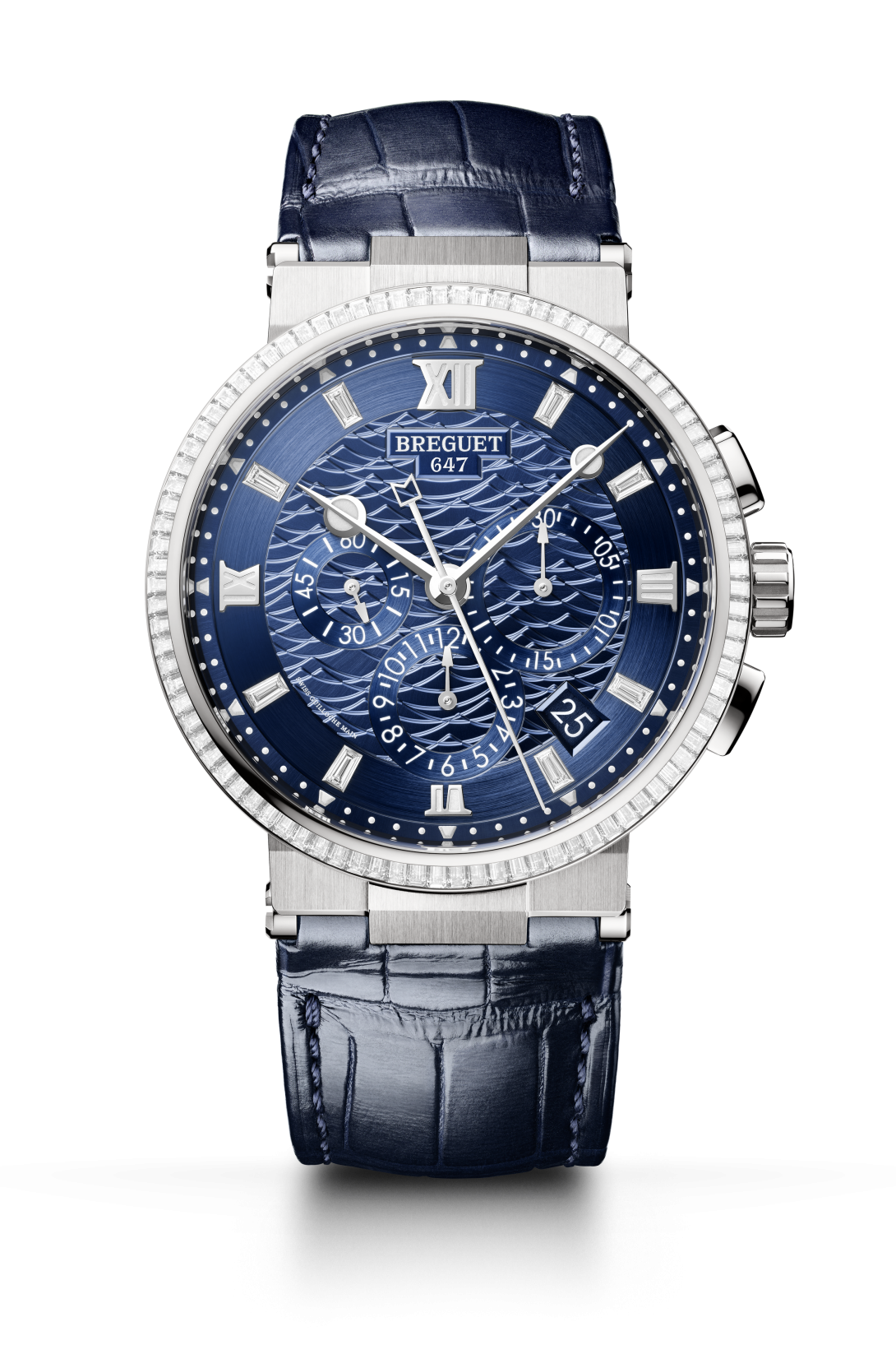 다이얼 전체에 인디케이터가 장식된 마린 크로노그래프 모델, 그 품격에 걸맞는 바게트 다이아몬드 세팅