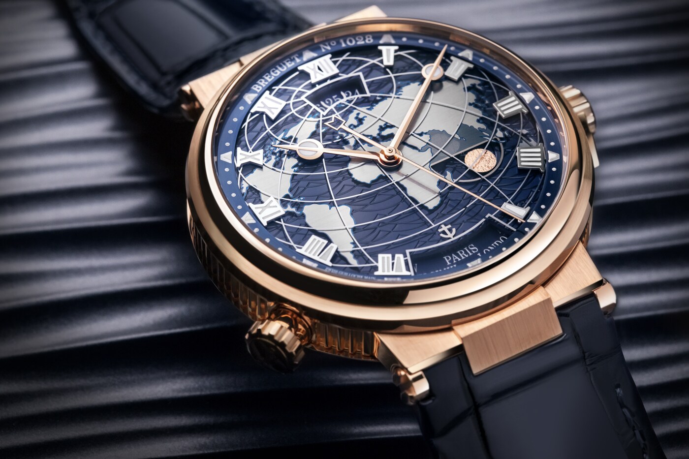 탁월한 기술적 요소를 성취할 수 있던 원동력은 바로 특별한 푸셔와 크라운입니다. 시계에서 첫 번째 도시의 시간과 날짜를 선택한 다음 두 번째 도시를 설정하고 나면 메커니즘이 캠, 해머, 일체형 차동 장치로 구성된 기발한 시스템을 활용하여 시간과 날짜를 계산합니다. 이제 푸셔를 한 번 누르면 지구 반대편까지 이동할 수 있으며, 그동안 시계는 단 한 순간도 정확성을 잃지 않습니다. 화이트 골드 또는 핑크 골드로 제공되는 이 모델의 다이얼에는 골드 또는 사파이어 소재의 여러 플레이트가 겹쳐져 세계 지도가 구현되어 있는 것이 디자인 측면에서의 특징입니다.