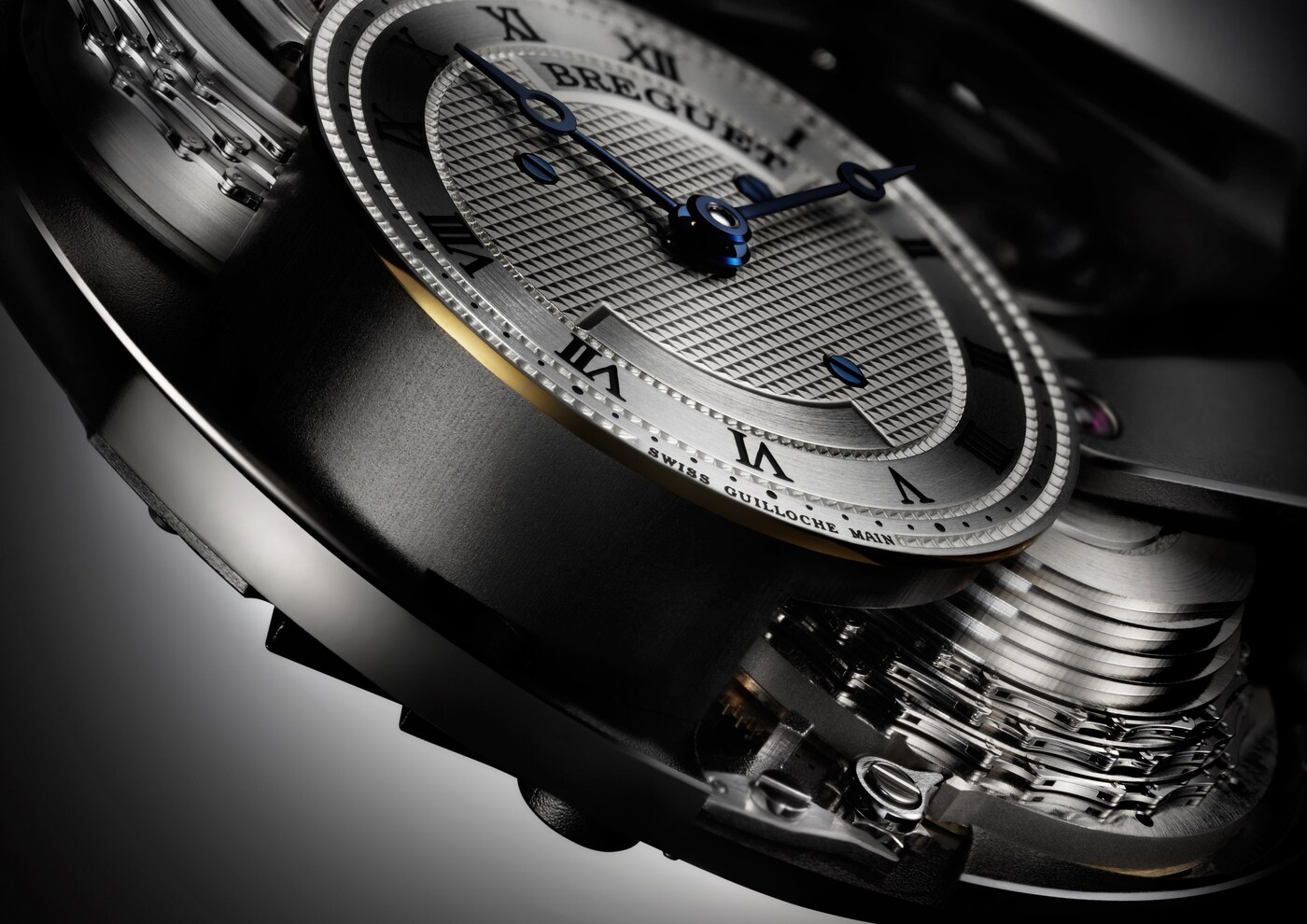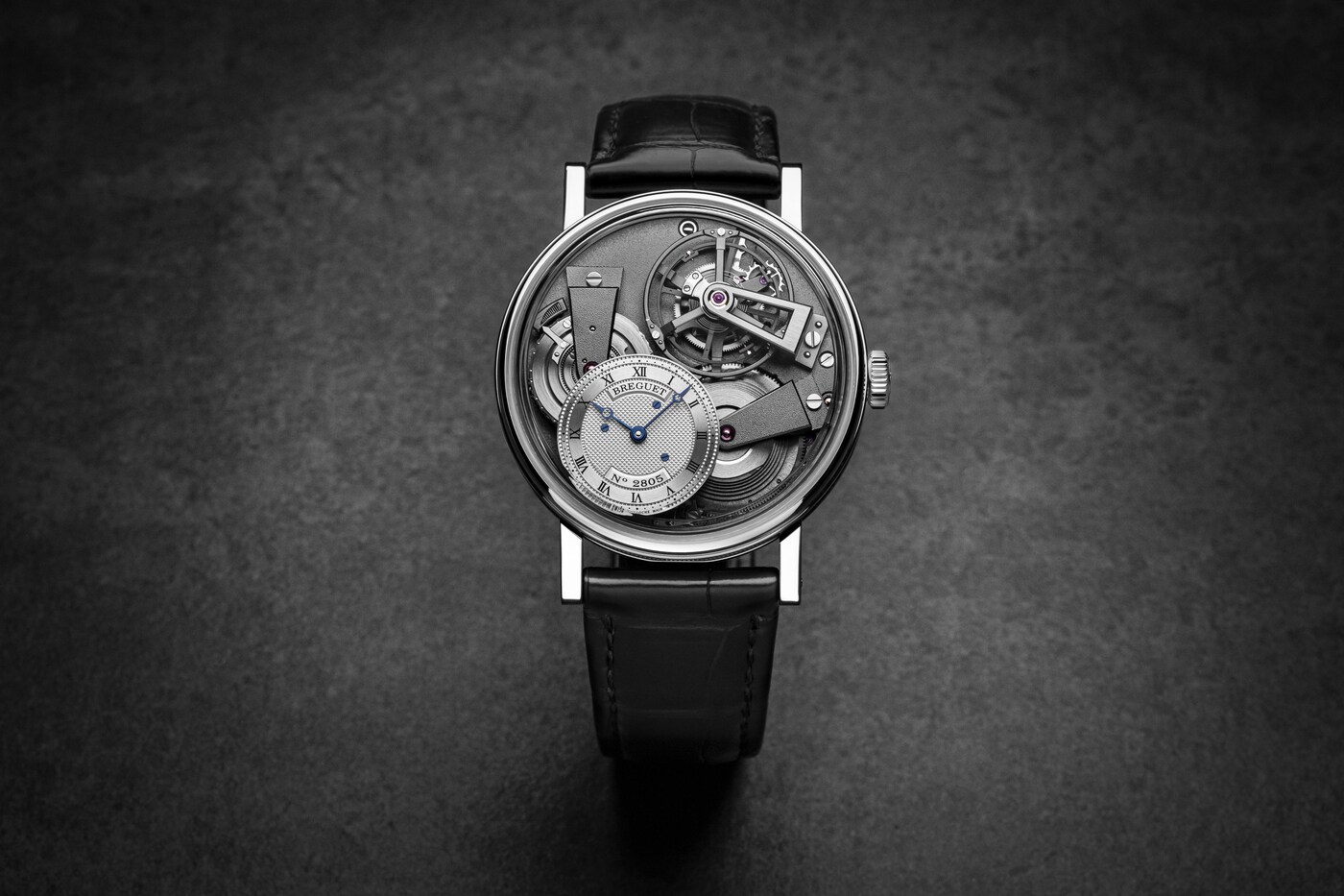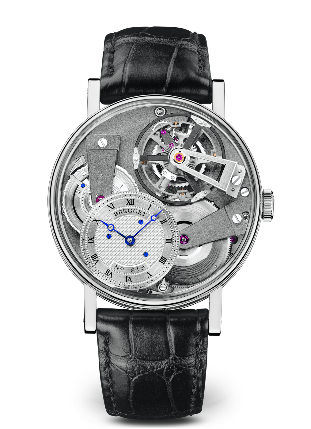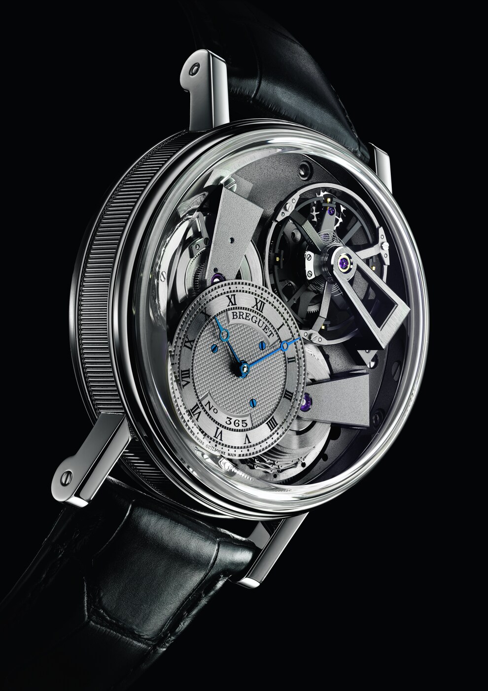 투르비용은 현존하는 상징적인 컴플리케이션 중 하나로, 아브라함 루이 브레게에 의해 발명되었다는 점에서 브레게 하우스와 긴밀하게 연결되어 있습니다. 트래디션 7047에 장착된 퓨제 체인 투르비용의 트랜스미션 메커니즘은 와인딩 수준에 관계없이 일정한 토크를 보장하여, 시계의 규칙적인 작동을 최적화하는 특성을 지닙니다. 또한 이 핸드 와인딩 시계는 파워 리저브에 관하여 특허를 적용받습니다. 10시 방향에 표시되는 파워 리저브는 감속 차동 시스템을 갖추어 배럴 드럼에 직접 디스플레이됩니다.