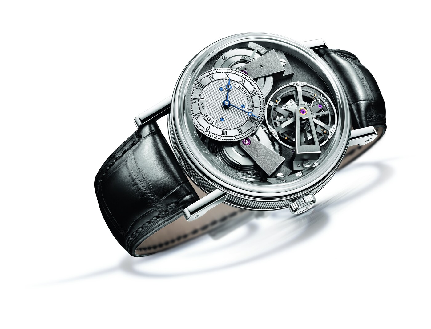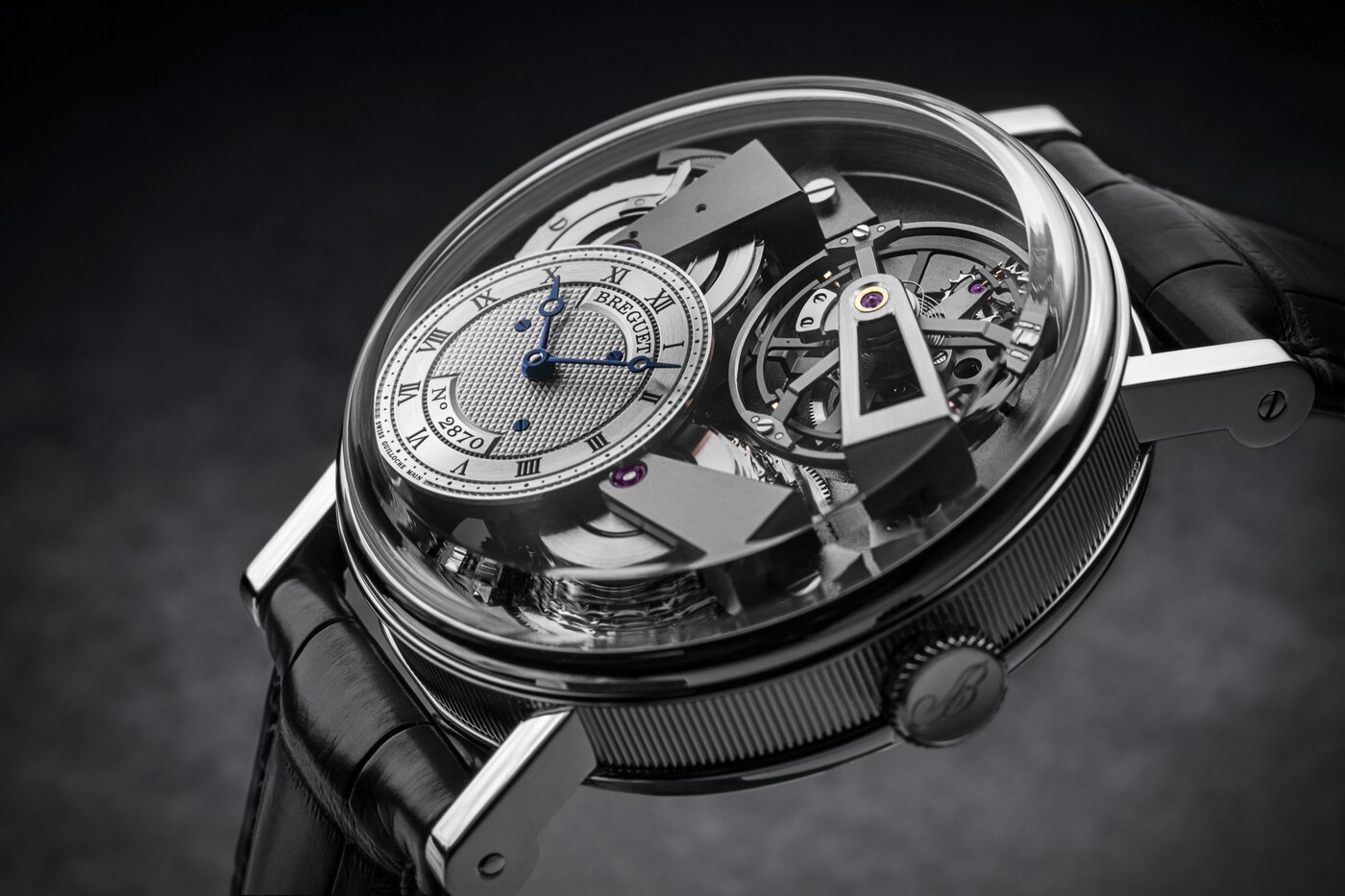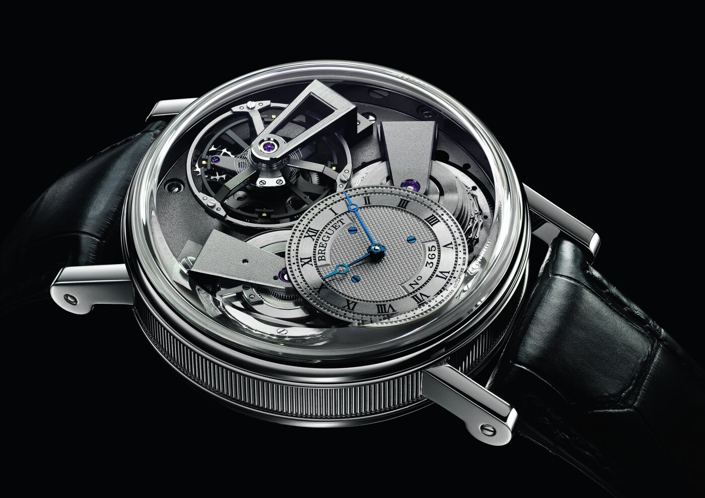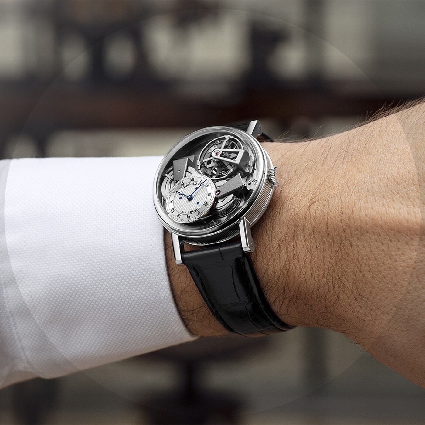 투르비용은 현존하는 상징적인 컴플리케이션 중 하나로, 아브라함 루이 브레게에 의해 발명되었다는 점에서 브레게 하우스와 긴밀하게 연결되어 있습니다. 트래디션 7047에 장착된 퓨제 체인 투르비용의 트랜스미션 메커니즘은 와인딩 수준에 관계없이 일정한 토크를 보장하여, 시계의 규칙적인 작동을 최적화하는 특성을 지닙니다. 또한 이 핸드 와인딩 시계는 파워 리저브에 관하여 특허를 적용받습니다. 10시 방향에 표시되는 파워 리저브는 감속 차동 시스템을 갖추어 배럴 드럼에 직접 디스플레이됩니다.