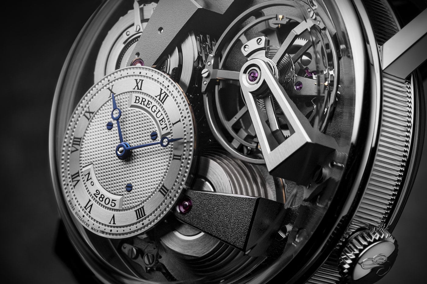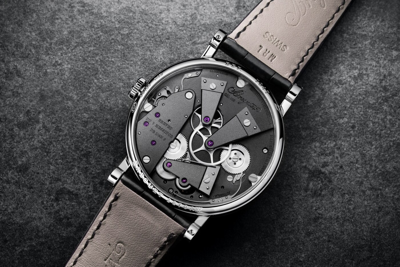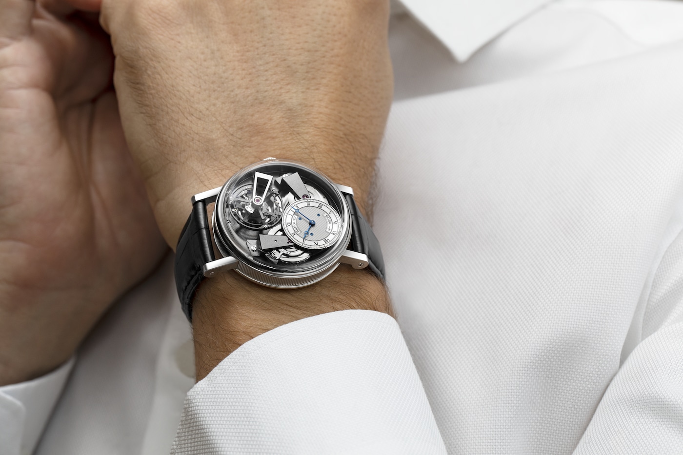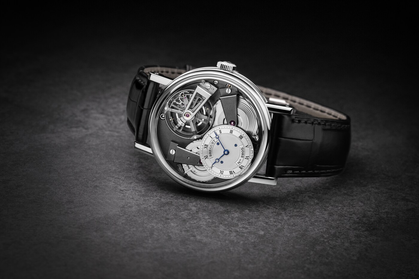 투르비용은 현존하는 상징적인 컴플리케이션 중 하나로, 아브라함 루이 브레게에 의해 발명되었다는 점에서 브레게 하우스와 긴밀하게 연결되어 있습니다. 트래디션 7047에 장착된 퓨제 체인 투르비용의 트랜스미션 메커니즘은 와인딩 수준에 관계없이 일정한 토크를 보장하여, 시계의 규칙적인 작동을 최적화하는 특성을 지닙니다. 또한 이 핸드 와인딩 시계는 파워 리저브에 관하여 특허를 적용받습니다. 10시 방향에 표시되는 파워 리저브는 감속 차동 시스템을 갖추어 배럴 드럼에 직접 디스플레이됩니다.