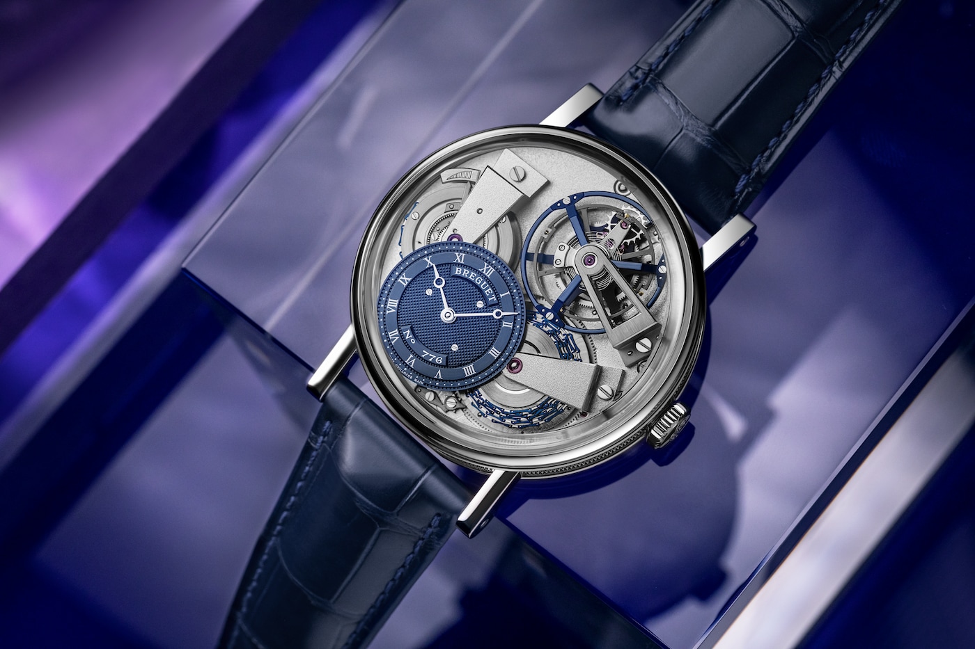 컬렉션 특유의 구조를 통해 언제든 플레이트 상단의 투르비용과 퓨제-체인 트랜스미션을 감상할 수 있습니다.