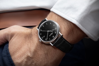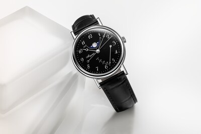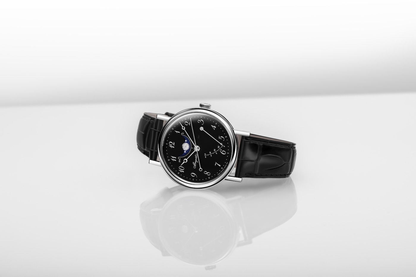 짙은 블랙은 가장 다루기 어려운 컬러 중 하나입니다. 이러한 짙은 블랙 컬러의 “그랑 푀” 에나멜로 코팅된 새로운 클래식 라인의 매끄럽고 균일한 다이얼은 브레게 아라비아 숫자 인덱스, 눈에 띄지 않는 파우더 실버 컬러로 은은한 대비를 이루는 미닛 트랙과 함께 아치 형태를 띱니다. 시, 분, 초를 표시하는 속이 빈 사과 형태의 로듐 도금 브레게 핸즈가 대비 효과를 더욱 강조합니다. 시계의 정통성을 보장하기 위해 18세기 워치메이커들 사이에서 유행했던 관습과 관행을 차용한 이 “그랑 푀” 에나멜 다이얼은 클래식 7787의 경우 중앙 기준 우측, 클래식 5177의 경우 중앙과 6시 방향 사이에서 브레게의 비밀 서명을 볼 수 있습니다.