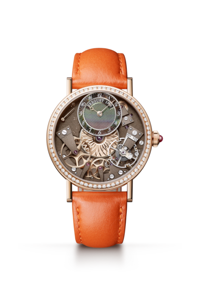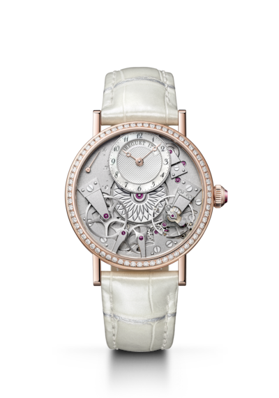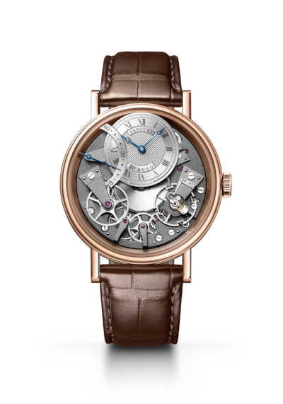 100% 브레게 스타일정밀한 메커니즘을 전면에 드러내는 독창적인 구조와 수작업으로 완성한 에나멜 다이얼을 갖춘 트래디션 7035는 브레게가 250년간 축적해온 기술적, 미학적 혁신의 정수를 담고 있다. 브레게의 250주년을 기념해 선보인 익스클루시브 합금 브레게 골드…