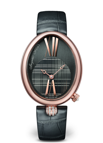브레게가 블랙 “그랑 푀” 에나멜 다이얼을 장착한 레인 드 네이플 모델을 컬렉션에서 처음으로 선보입니다. 회전하는 브레게 아라비아 숫자로 완성된 새로운 페이스는 브릴리언트 컷 다이아몬드로 둘러싸여 장식됐으며, 화려한 페어형 다이아몬드가 숫자 6을 대신하여 시계를 수놓습니다. 레인 드…