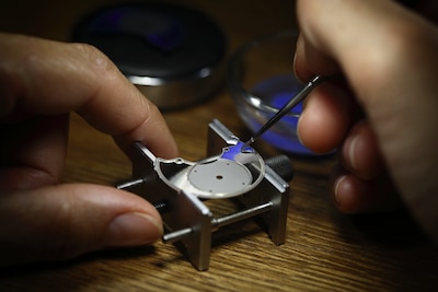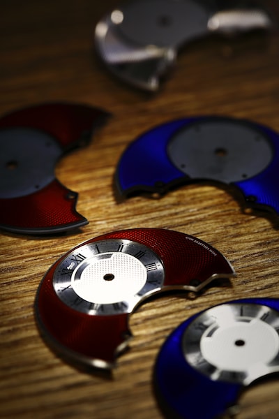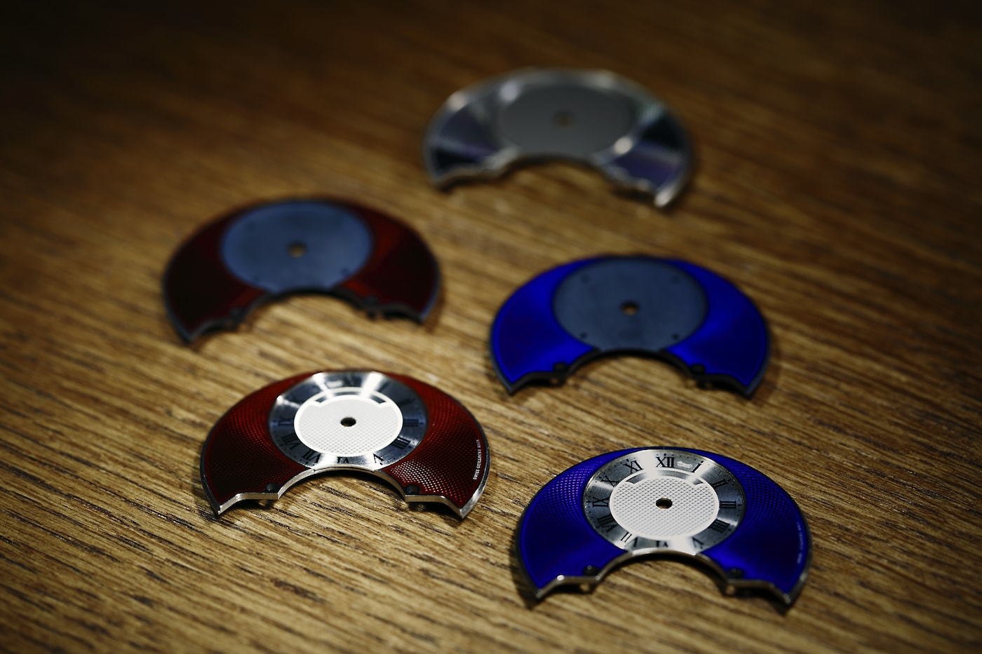 这款直径35毫米的腕表彰显两大亮点——12点钟位置的偏心表盘和6点钟位置的陀飞轮。