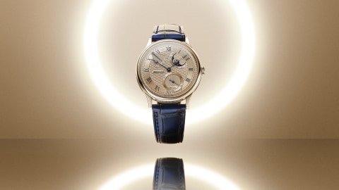 宝玑首次在表壳采用“钟表堤岸”手工玑镂刻花图案,取代标志性的钱币饰纹——以横向饰纹替代原本的垂直饰纹,焕发全新格调。