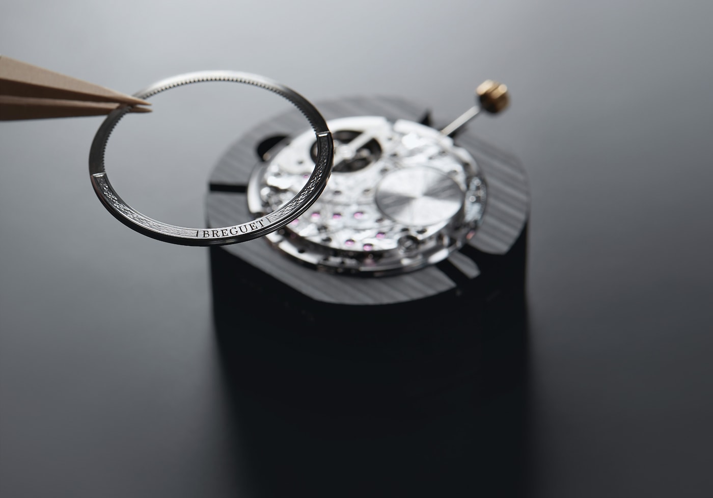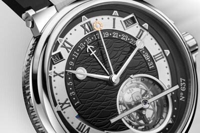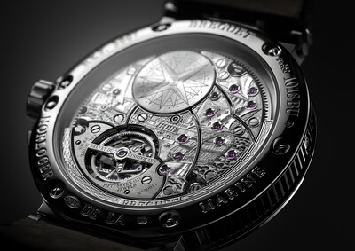 阿伯拉罕-路易·宝玑于1801年发明陀飞轮,以抵消地心引力对当时怀表机芯造成的影响。在这款全新时计中,陀飞轮框架以钛金属制成,硅质宝玑摆轮游丝位于5点钟位置。