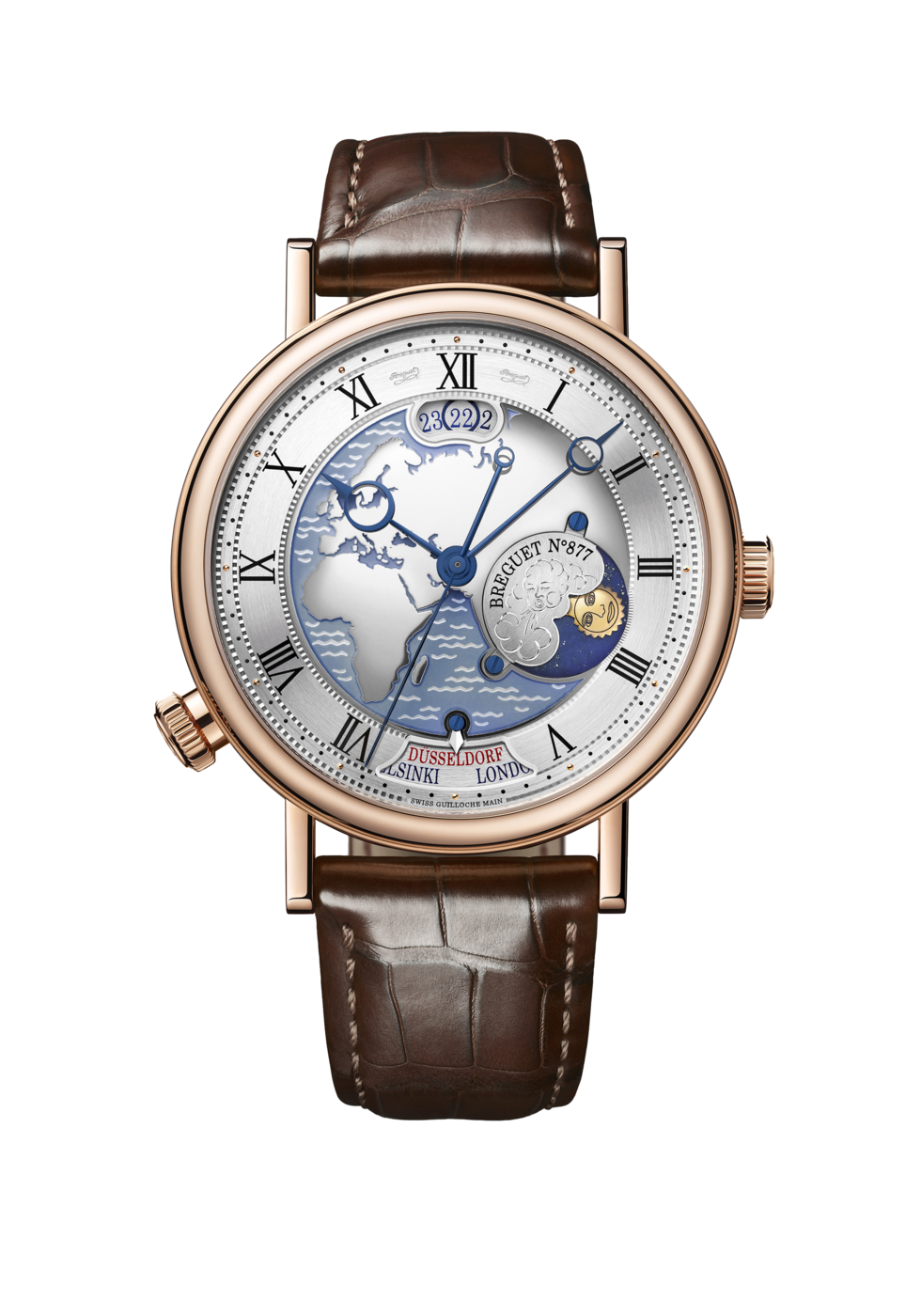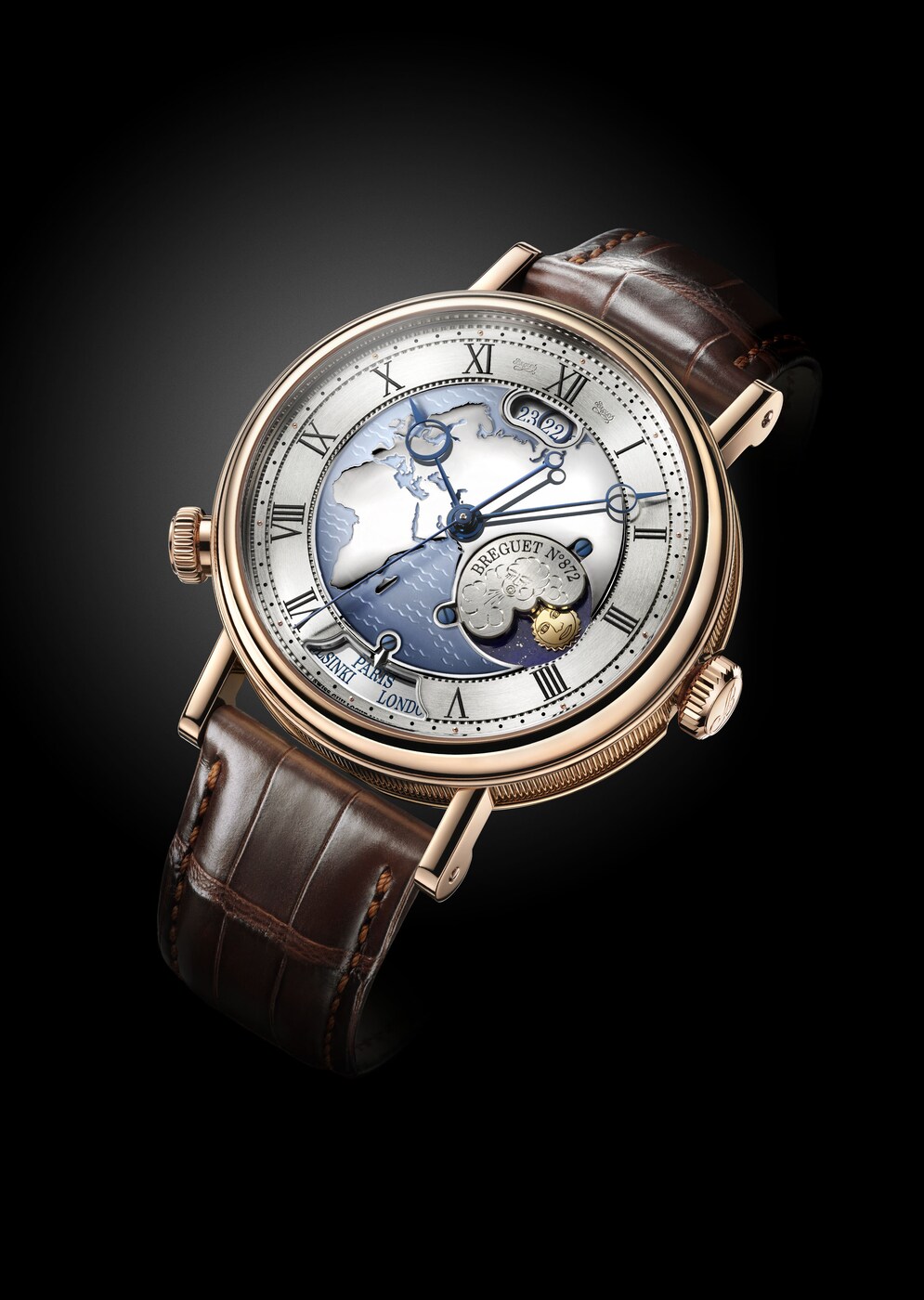 这款机械腕表备有美洲大陆款式、欧洲与非洲大陆款式、亚洲与大洋洲款式可供选择,是宝玑首款配备瞬时时区跳转功能的腕表。