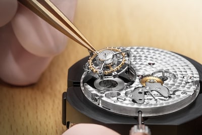 这款直径35毫米的腕表彰显两大亮点——12点钟位置的偏心表盘和6点钟位置的陀飞轮。