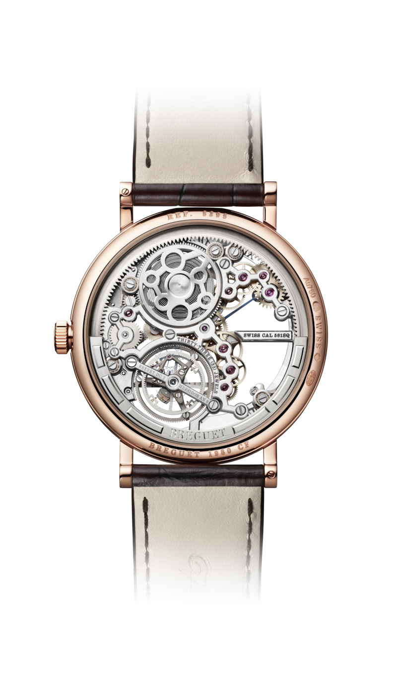 宝玑为这款腕表搭载仅3毫米厚的镂空超薄陀飞轮自动上链机芯,将精湛工艺发挥至极致。
