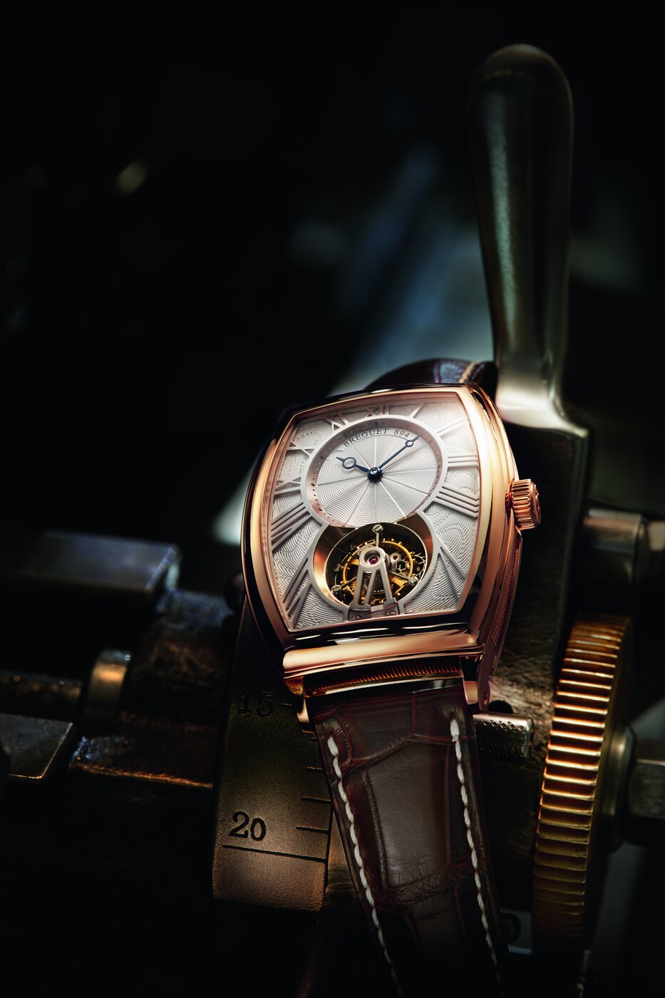 这款腕表采用对称的布局设计,淋漓尽致地演绎宝玑最具代表性的复杂功能。