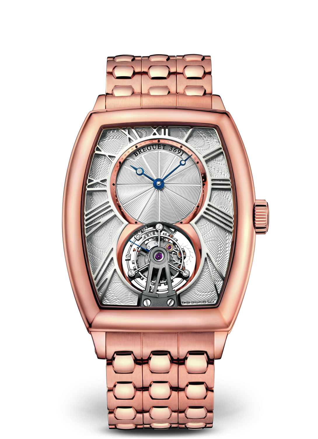 这款腕表采用对称的布局设计,淋漓尽致地演绎宝玑最具代表性的复杂功能。