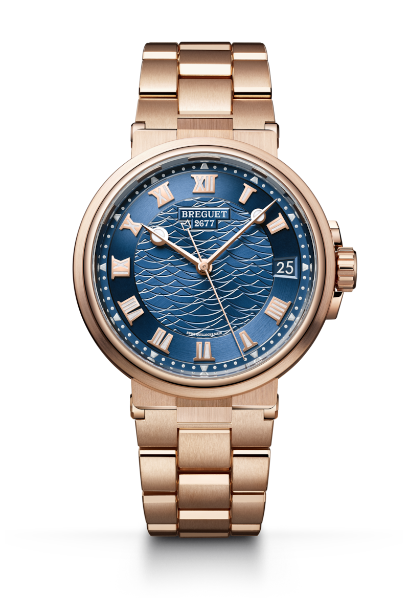 这款腕表简约纯粹,采用精致的三针布局,并于3点位置设日期窗口。