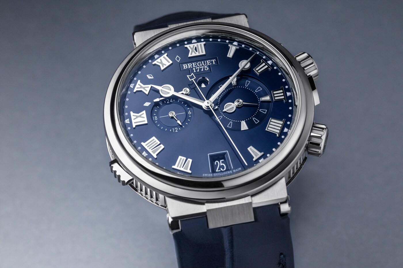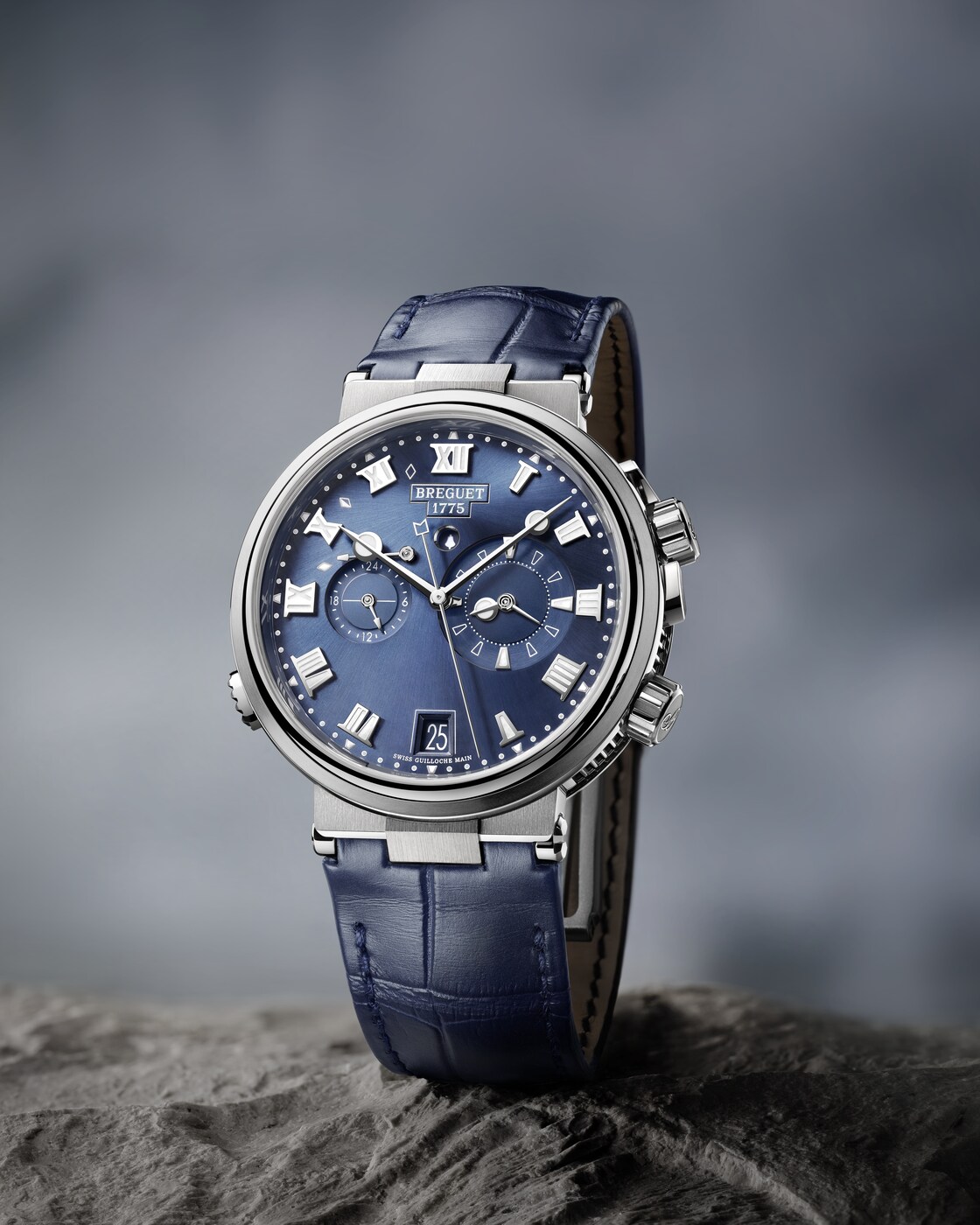 位于3时位置的12小时计时器显示配戴者设定的闹铃时间。闹铃启动时,12时位置的视窗会显示航海钟图案,巧妙致敬此系列的航海主题。腕表的动力储备显示低调地设于9时和12时位置之间。当腕表完全上链时,箭头指向9时位置的颜色区域。第二时区显示同样设于9时位置。指针和标记均采用夜光设计,无论白天还是黑夜都能轻松读时。