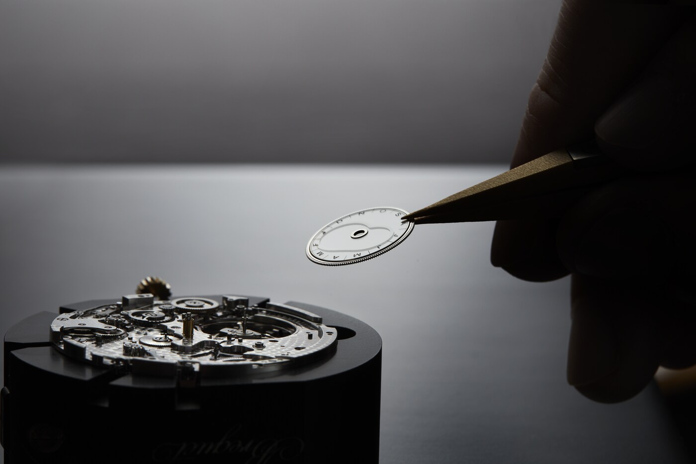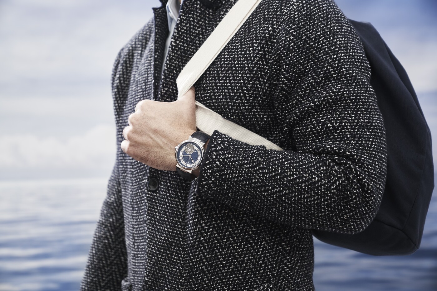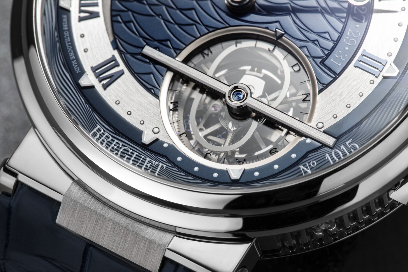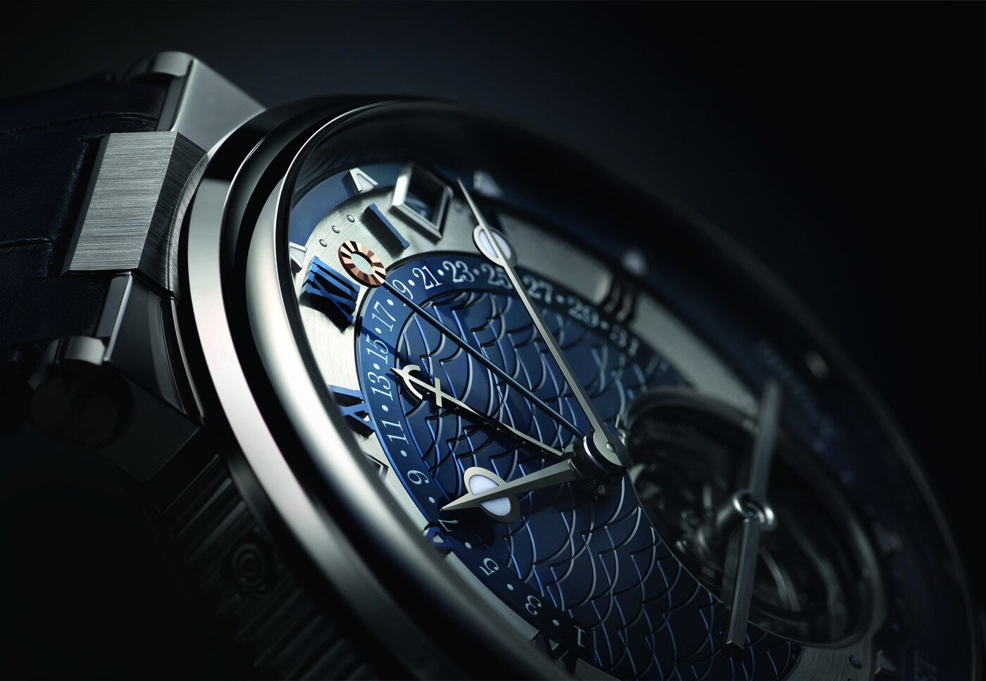 这款大复杂功能腕表于5点位置设陀飞轮,同时配备万年历和时间等式功能。