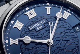 全新钛金属腕表的灰色或蓝色表盘经过缎面处理,散发独特魅力。其表面虽光洁亮泽,亦有玑镂刻花。 在宝玑标志和独立编号的四周饰有一圈精致利落的直线线条,即玑镂刻花。 钛金属表款可搭配钛金属表链,充分展现材质轻盈的优势。带锁扣的折叠表扣亦为钛金属表链增添一抹运动气息。